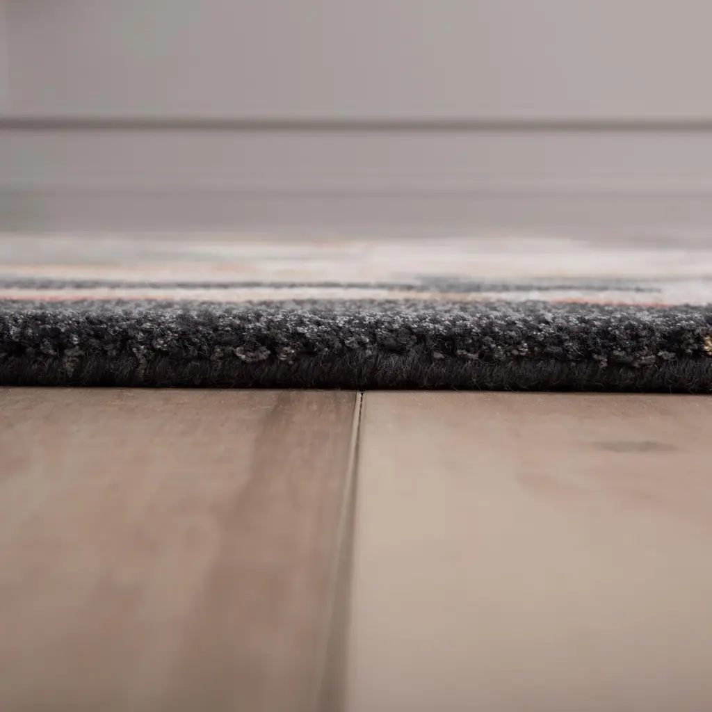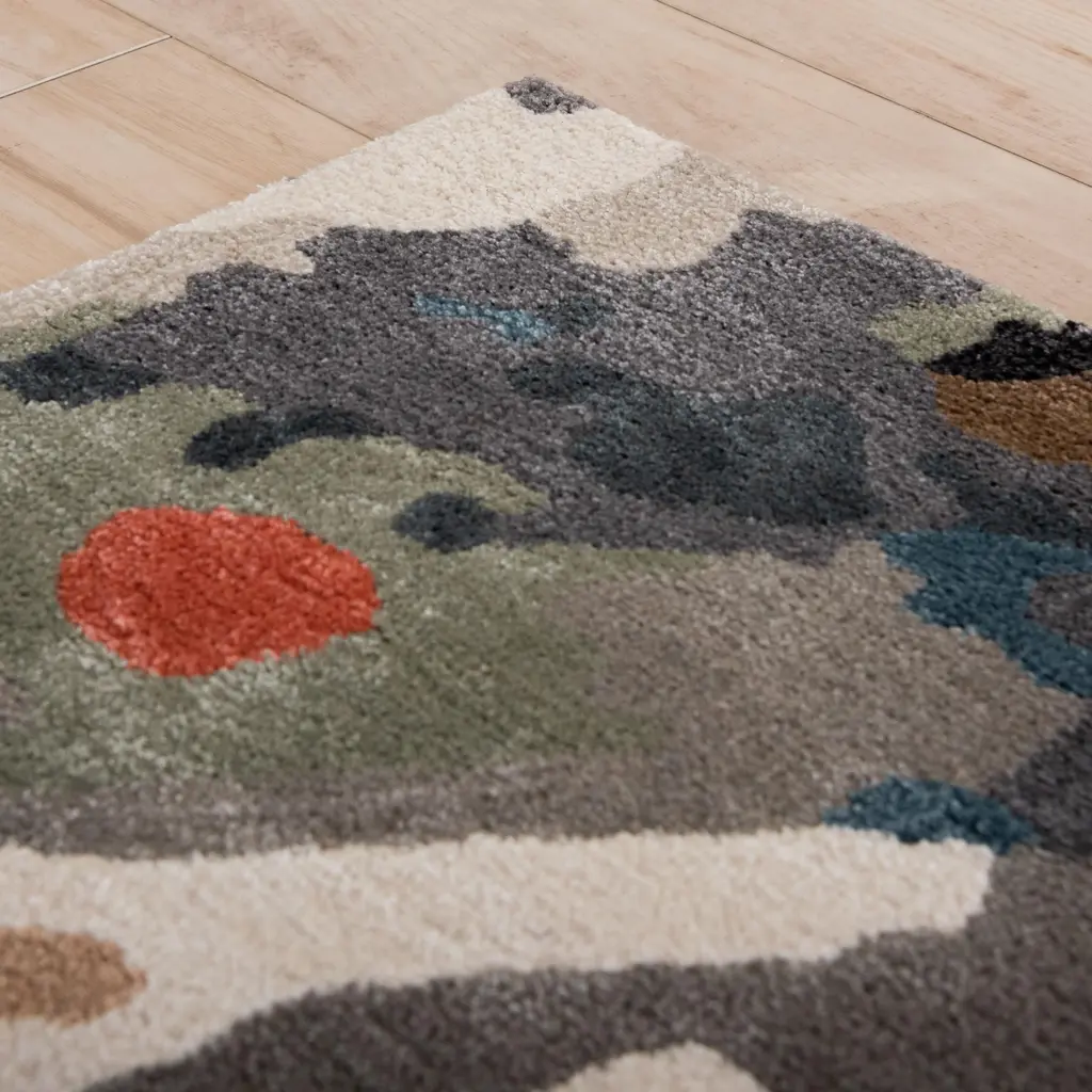 Collection: Kinetic Colors: Gray, Olive, Beige, Ivory, Dark Red, Medium Gray, Charcoal Construction: Hand Tufted Material: Face: 40% Wool / 60% Tencel Pile: Medium Pile Pile Height: 0.4" Styles: Contemporary Backing: Canvas Made In: India Price Range: $$$$$ (Premium)