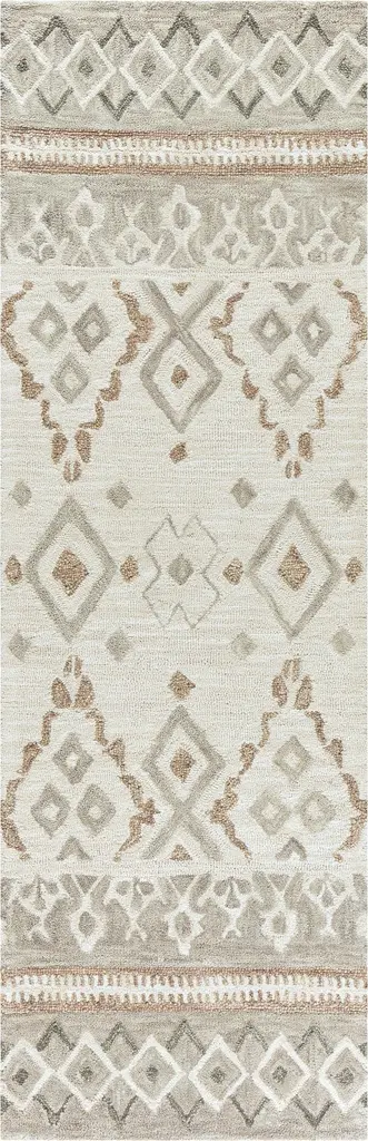 Collection: Opulent Colors: Clear, Taupe Construction: Hand Tufted Material: Face: 100% Wool Pile: High Pile Pile Height: 0.6" Styles: Transitional Backing: Canvas Made In: India Price Range: $$$$$ (Affordable)