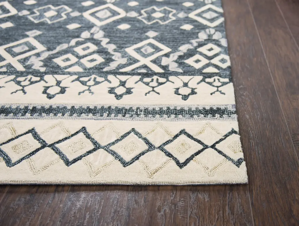 Collection: Opulent Colors: Gray, Navy, Blue Construction: Hand Tufted Material: Face: 100% Wool Pile: High Pile Pile Height: 0.6" Styles: Transitional Backing: Canvas Made In: India Price Range: $$$$$ (Affordable)