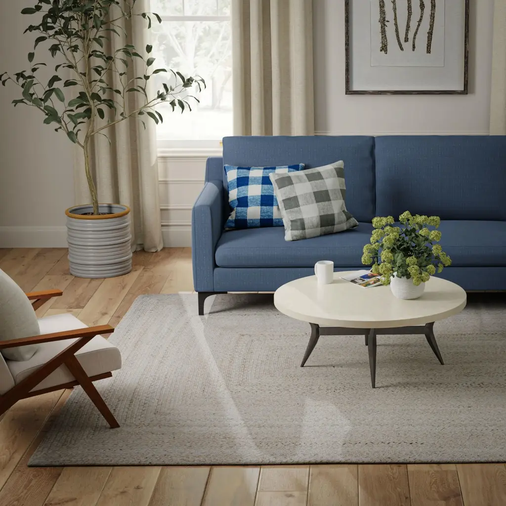 Collection: Pavilion Colors: Ivory Construction: Hand Woven Material: Face: 100% Recycled Polyester Pile: Medium Pile Pile Height: 0.3" Styles: Casual Outdoor Safe: Yes Made In: India Price Range: $$$$$ (Affordable)