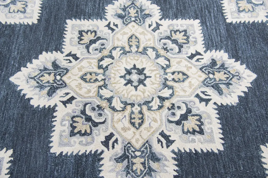 Collection: Resonant Colors: Blue, Brick Red, Gray, Tan Construction: Hand Tufted Material: Face: 100% Wool Pile: High Pile Pile Height: 0.6" Styles: Transitional Backing: Canvas Made In: India Price Range: $$$$$ (Affordable)