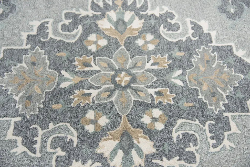 Collection: Resonant Colors: Gray, Light Gray, Medium Brown, Blue Gray Construction: Hand Tufted Material: Face: 100% Wool Pile: High Pile Pile Height: 0.6" Styles: Transitional Backing: Canvas Made In: India Price Range: $$$$$ (Affordable)
