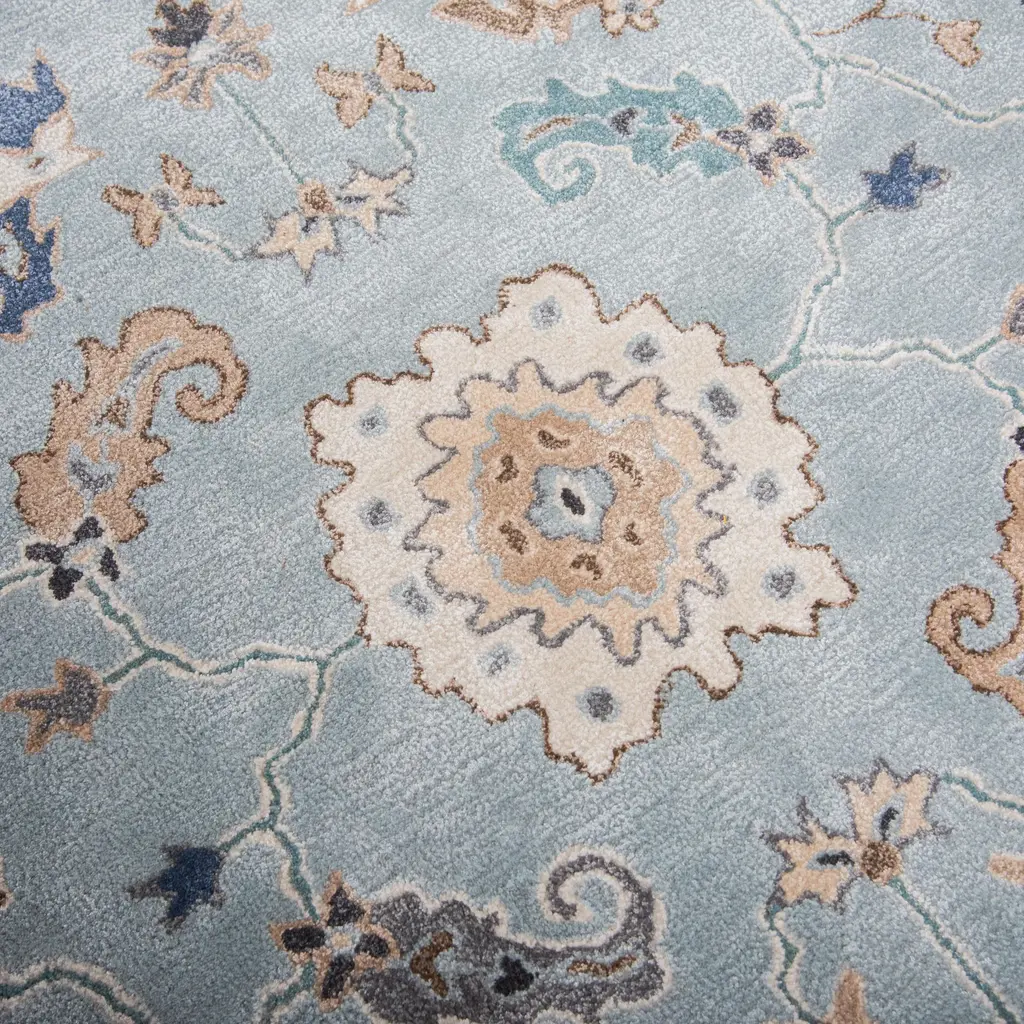 Collection: Sapphire Colors: Blue, Gray, Red, Teal, Dark Red, Beige, Ivory Construction: Hand Tufted Material: Face: 40% Wool / 60% Tencel Pile: Medium Pile Pile Height: 0.4" Styles: Traditional Backing: Canvas Made In: India Price Range: $$$$$ (Premium)