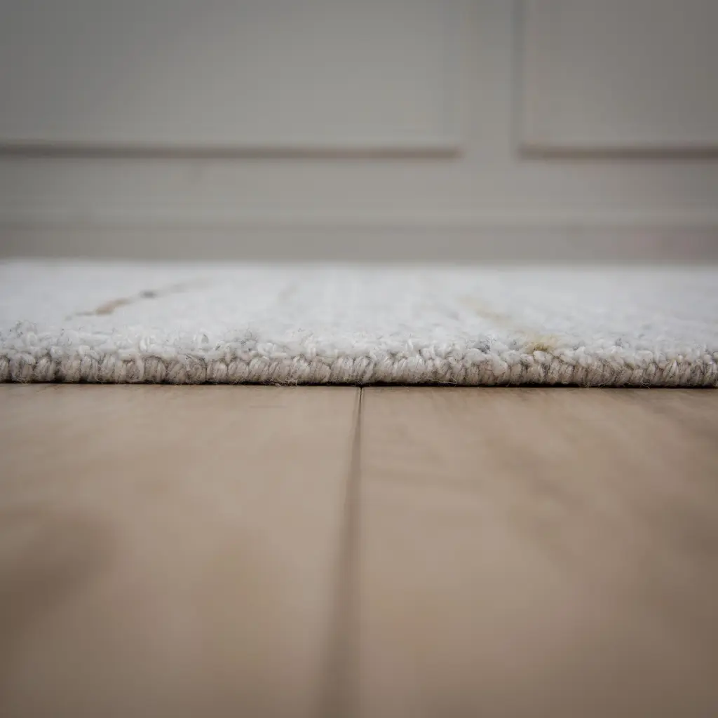 Collection: Strada Colors: Ivory, Light Brown, Dark Brown, Light Gray Construction: Hand Tufted Material: Face: 95% Recycled Polyester / 5%Wool Blended Pile: Medium Pile Pile Height: 0.5" Styles: Casual,Solid Backing: Canvas Made In: India Price Range: $$$$$ (Affordable)