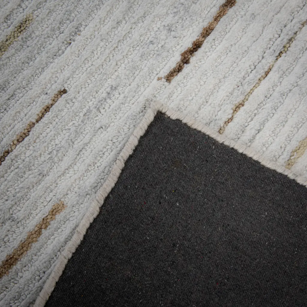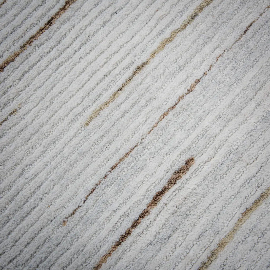 Collection: Strada Colors: Ivory, Light Brown, Dark Brown, Light Gray Construction: Hand Tufted Material: Face: 95% Recycled Polyester / 5%Wool Blended Pile: Medium Pile Pile Height: 0.5" Styles: Casual,Solid Backing: Canvas Made In: India Price Range: $$$$$ (Affordable)
