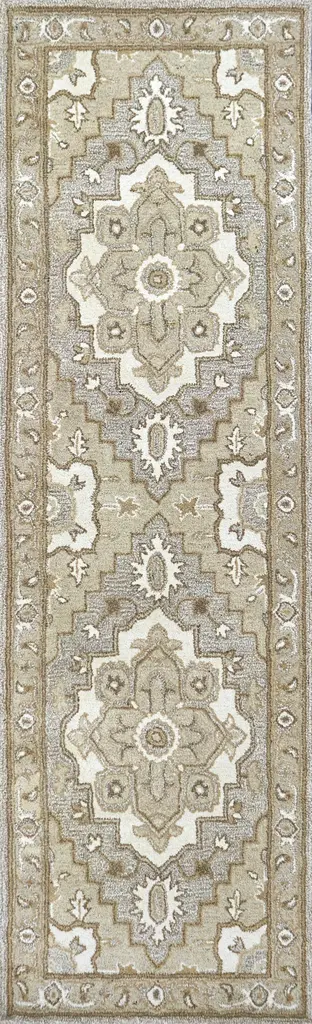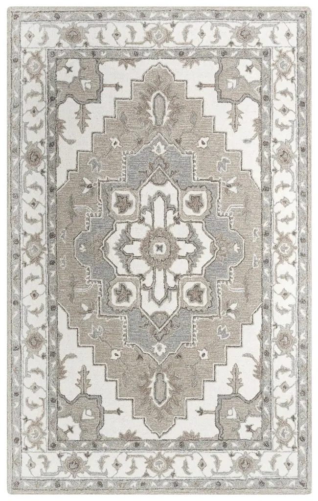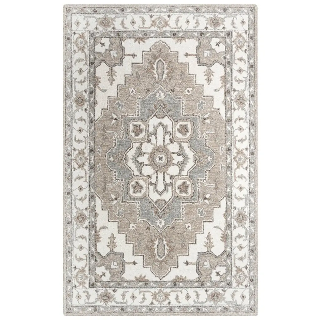 Collection: Suffolk Colors: Gray, Brick Red Construction: Hand Tufted Material: Face: 100% Wool Pile: High Pile Pile Height: 0.6" Styles: Traditional Backing: Canvas Made In: India Price Range: $$$$$ (Affordable)