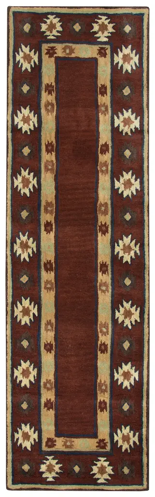 Collection: Southwest Colors: Red, Tan, Rust, Navy, Sage Construction: Hand Tufted Material: Face: 100% Wool Pile: High Pile Pile Height: 0.6" Styles: Southwestern Backing: Canvas Made In: India Price Range: $$$$$ (Affordable)
