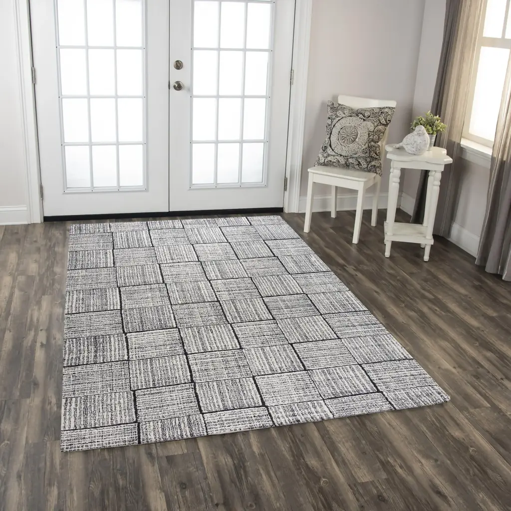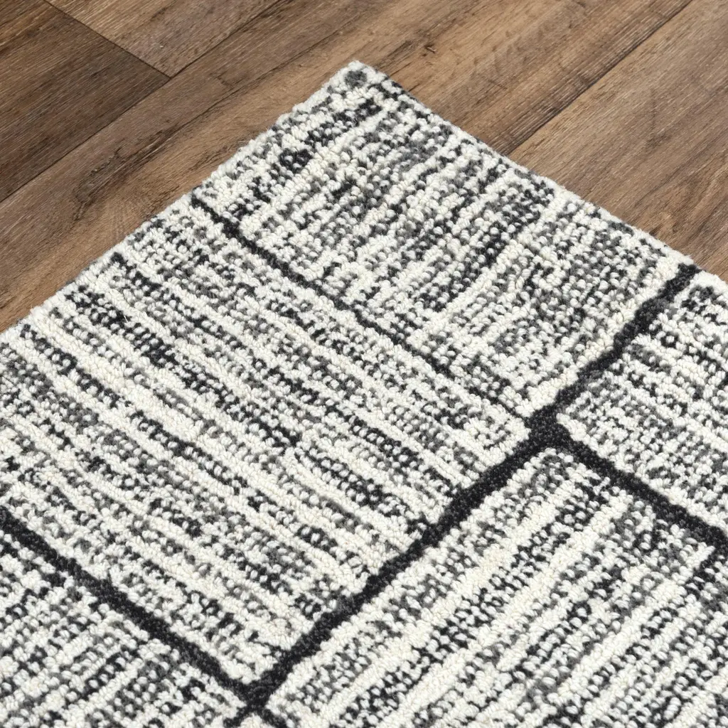 Collection: Taylor Colors: Gray, Ivory Construction: Hand Tufted Material: Face: 100% Wool Pile: Medium Pile Pile Height: 0.5" Backing: Canvas Made In: India Price Range: $$$$$ (Affordable)