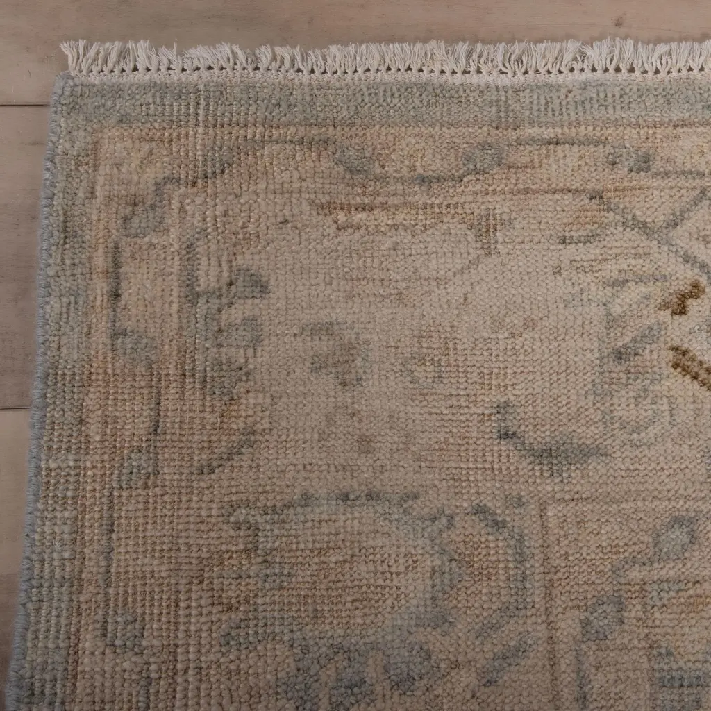 Collection: Tuscany Colors: Blue, Ivory, Beige Construction: Hand Knotted Material: Face: !00% Hand Spun Wool Pile: Medium Pile Pile Height: 0.3" Styles: Traditional Made In: India Price Range: $$$$$ (Premium)
