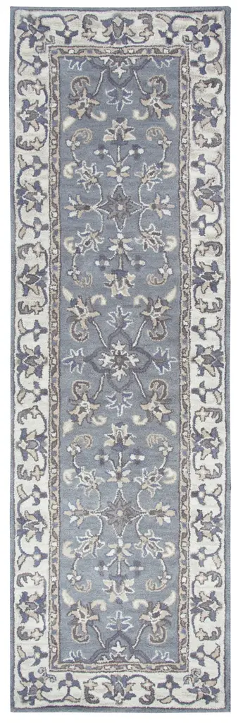 Collection: Valintino Colors: Gray, Tan, Ivory Construction: Hand Tufted Material: Face: 100% Wool Pile: High Pile Pile Height: 0.6" Styles: Traditional Backing: Canvas Made In: India Price Range: $$$$$ (Affordable)