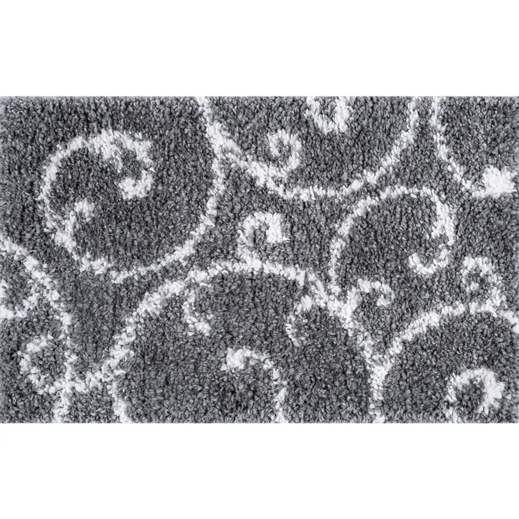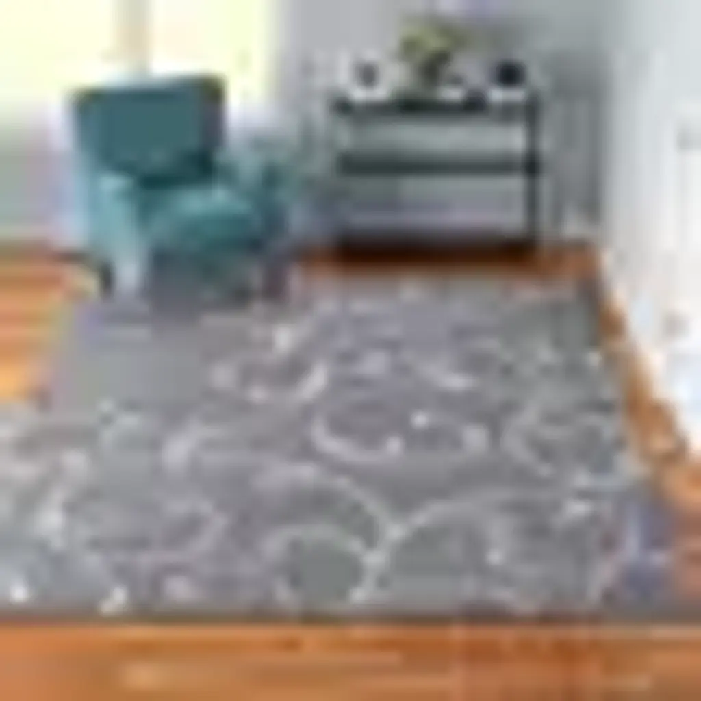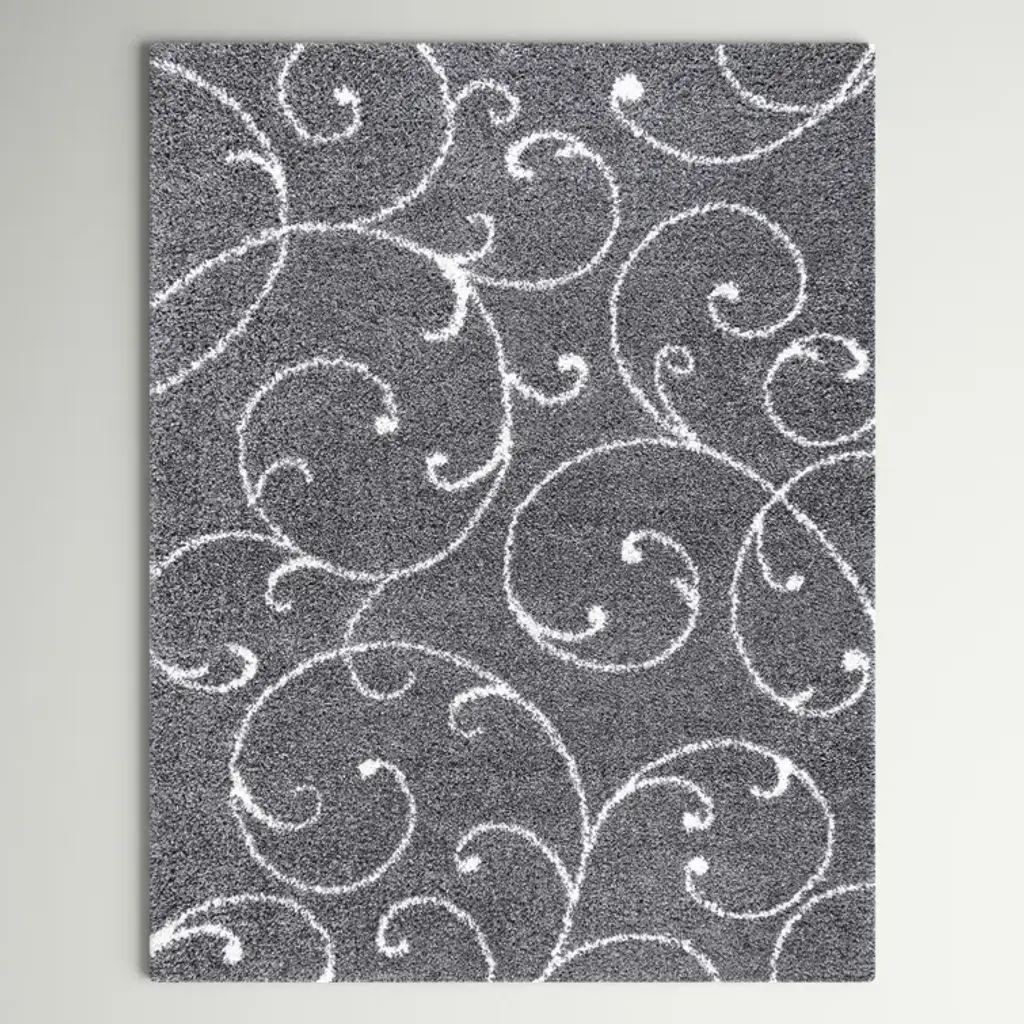 This shag area rug showcases a scrolling floral pattern for a stylish and textured foundation on your floors. It's power-loomed from polypropylene, and it features a dark gray and white color palette for a classic look. We love how the high 1.18" pile height makes it an ideal pick for low-traffic rooms like your living room or bedroom. Best of all, this rug is stain-resistant, allowing it to stand up to the occasional spill and splash. To care for it, vacuum without a beater bar or spot clean with a dry cloth. And to keep it in place, we recommend pairing it with a rug pad.