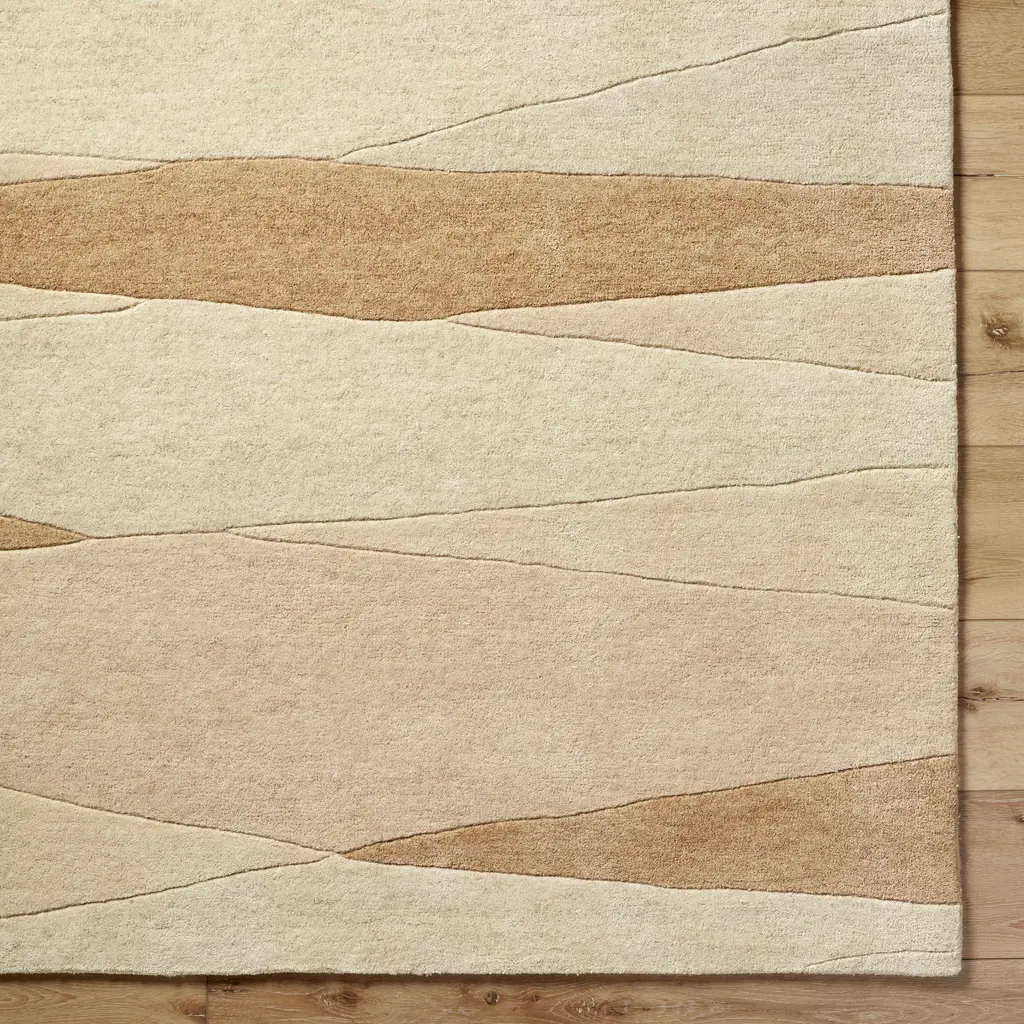 Collection: Robin Colors: Cream, Caramel Construction: Hand Tufted Material: 100% Wool Pile: Medium Pile Pile Height: 0.68" Styles: Contemporary Backing: Canvas Made In: India Thickness: 0.86" Price Range: $$$$$ (Affordable)
