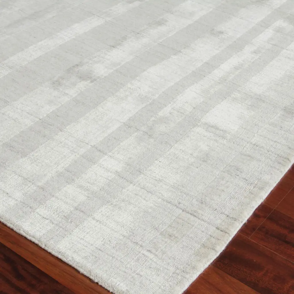 Subtle tonal stripes give this handcrafted rug a luxurious sense of depth. Made of lustrous, eco-friendly bamboo and soft, durable cotton, it will retain its quiet beauty for years to come. A rug pad is recommended to help prevent slipping.