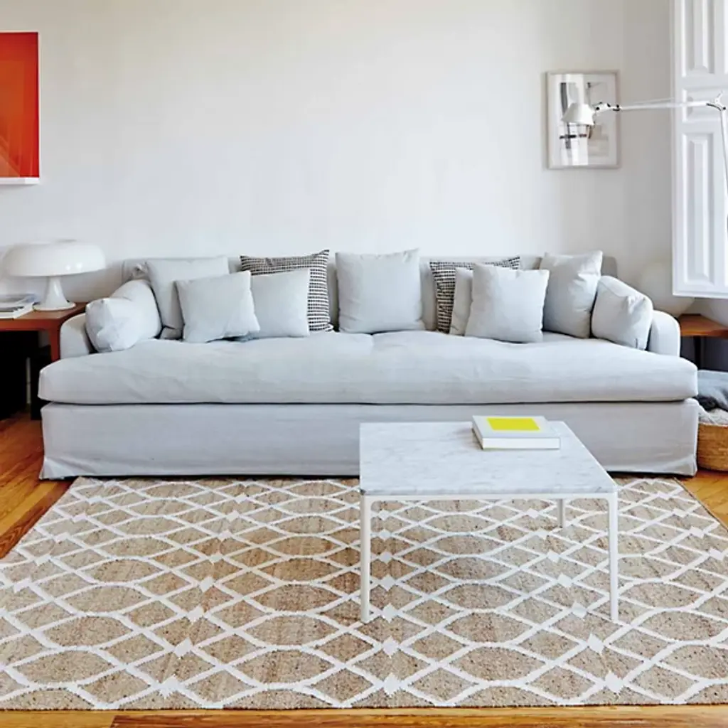 Enhance a modern room with Gan Rug’s Rodas Area Rug. Offers a clean and minimal design with the right amount of texture that can fit into just about any existing space. Uses a mixture of handwoven jute and viscose fabric that create an intertwined pattern throughout and provides a living area with a fresh look.