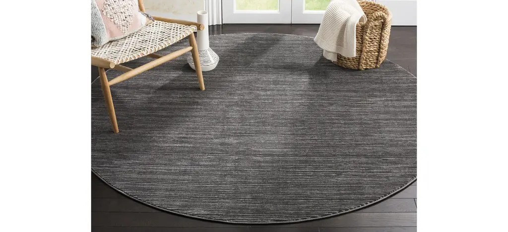 The Roden Round Area Rug is a soft textured, tonal area rug inspired by the organic energy of today's metro-chic decor, with shimmering hues set against a veiled white background casting a radiant display. It is machine loomed using supple synthetic yarns for a comforting feel underfoot and vivid colors that last.