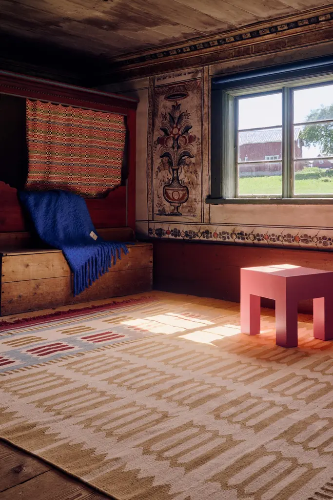 A collection that celebrates traditional Scandinavian women’s craftsmanship, inspired by Swedish folk traditions in a modern contemporary interpretation. With its patterns and techniques, it offers a series in harmonious color palettes and sleek geometric shapes. Each design is carefully crafted with high-quality materials to ensure durability and timelessness. This collection is suitable for all types of environments but is particularly practical for homes where functionality and aesthetics go hand in hand.