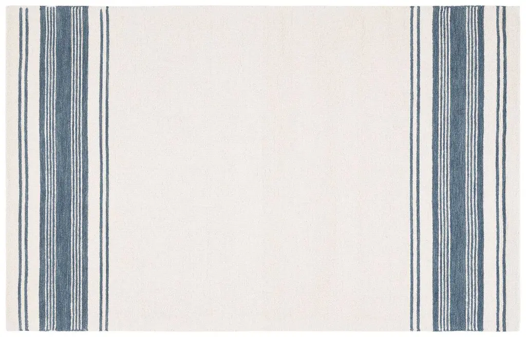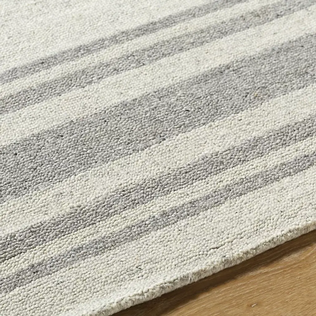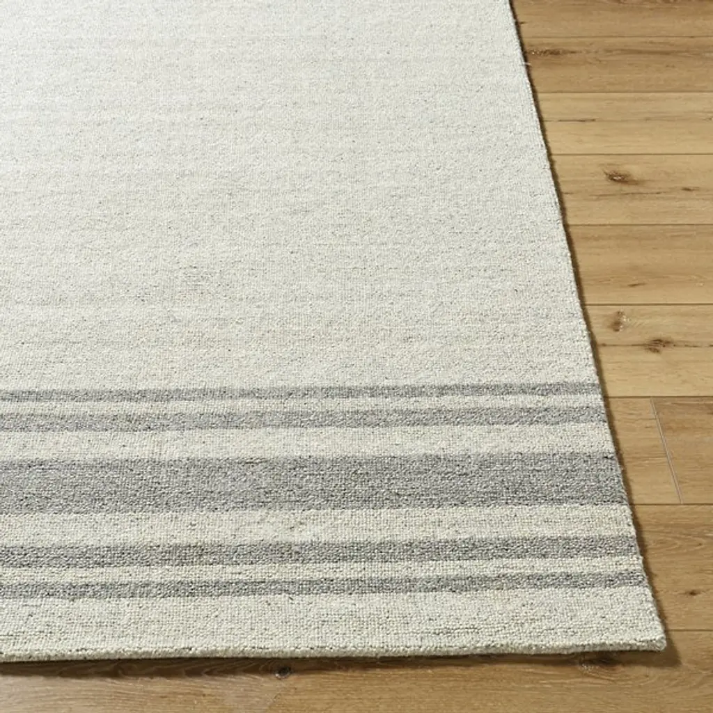 The Romano RMO 2301 Area Rug from Surya is simple yet artistic. It showcases groups of stripes at the top and bottom for a contemporary touch. It is crafted meticulously and loomed by hand. The area rug is composed of wool and features a lovely cotton wrap. A canvas backing provides extra protection.