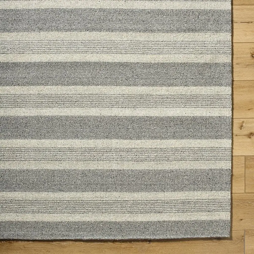 The Romano RMO 2305 Area Rug from Surya brings character to your living space. The rug features bold stripes with finer stripes within, giving it a contemporary flair. It is crafted in the artisanal, hand-loomed style and is composed of wool for comfort and has a cotton wrap. A canvas backing gives your floor protection from scuffs and scrapes.