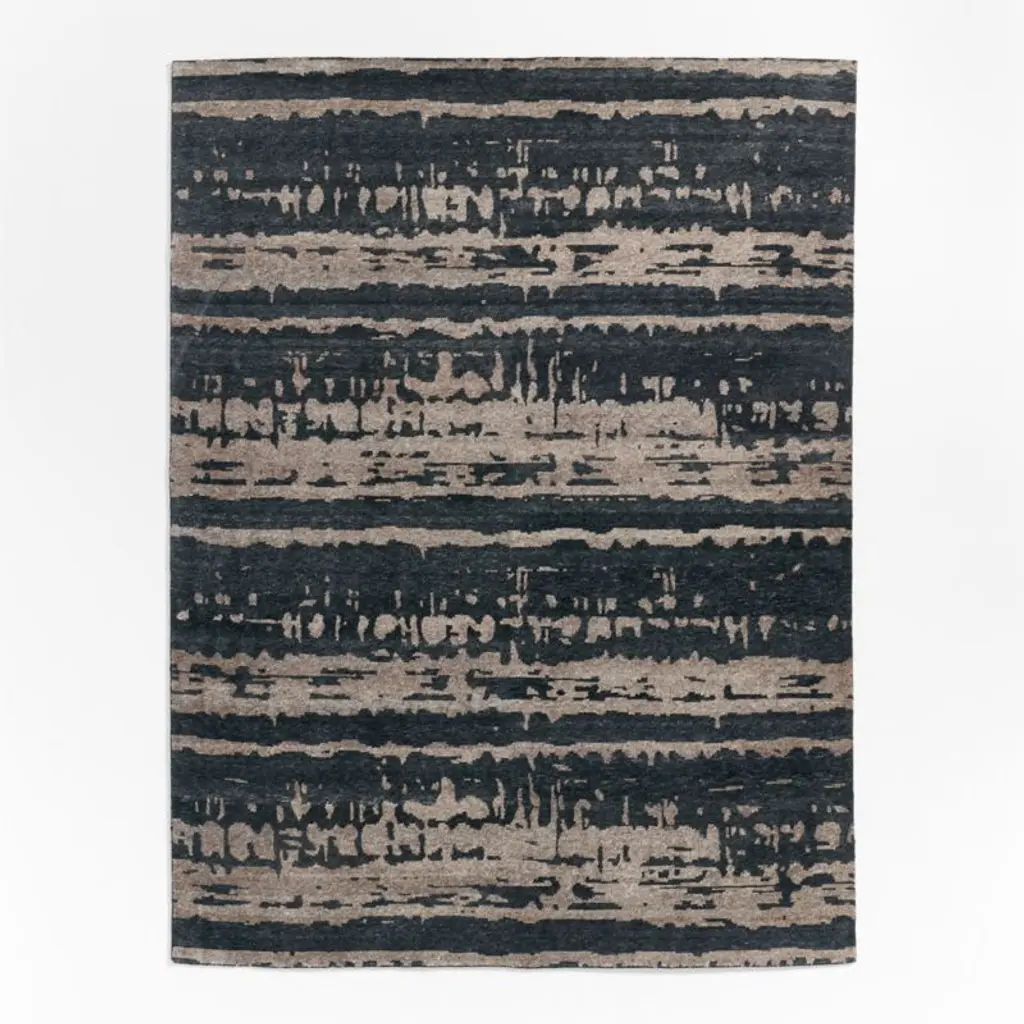 Rome sets a modern tone. Dynamically patterned with a broken grid, the contemporary rug serves as a piece of abstract art. Countless shades of tan and brown warm the black rug, hand knotted by skilled artisans. The medium pile showcases pure New Zealand wool, prized for its long, pliable fibers, lustrous sheen and incomparable softness. At home in high-traffic rooms where it can be enjoyed every day, the plush, luxurious rug indulges underfoot.Try it on first. Because color representation may vary by screen, using a swatch is an easy way to see exactly how your favorite rugs will look in your home. Our rug swatches ship free and can be returned online or at any store for a full refund.6'x9' rugs and 8'x10' rugs can be ordered online and picked up in astore near you. It's fast, easy and free.For larger rugs, order online and arrange a convenient delivery or warehouse pickup.