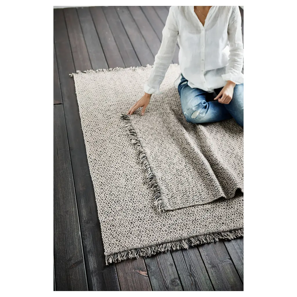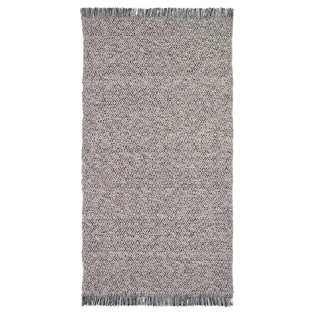 RÖRKÄR Rug, flatwoven - black/natural 2 ' 7 "x4 ' 11 ". The rug has inverse patterns on the front and on the back, so you can choose which side you want to show. By occasionally turning it over, it will withstand more wear and last even longer. Easy to vacuum thanks to its flat surface.