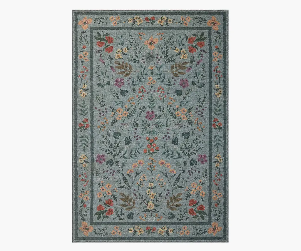 The Hawthorne rug makes a statement with its simplicity, featuring a grid of large scale blooms. The Rosa collection was inspired by folk art textiles that showcases the geometry of the traditional weaving technique. We've brought it to life with a power-loomed construction that is durable but still velvety-soft.
