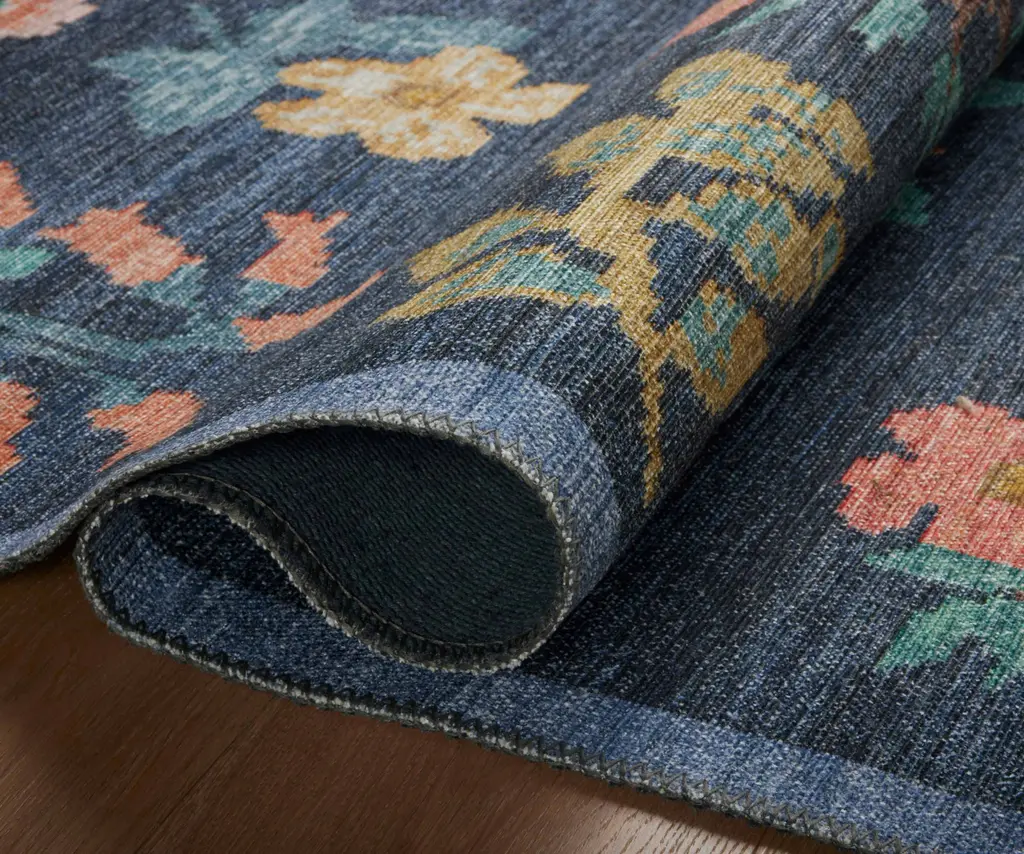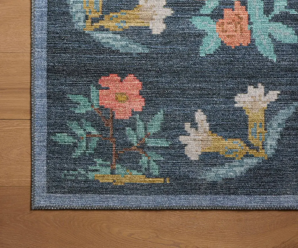The Hawthorne rug makes a statement with its simplicity, featuring a grid of large scale blooms. The Rosa collection was inspired by folk art textiles that showcases the geometry of the traditional weaving technique. We've brought it to life with a power-loomed construction that is durable but still velvety-soft.