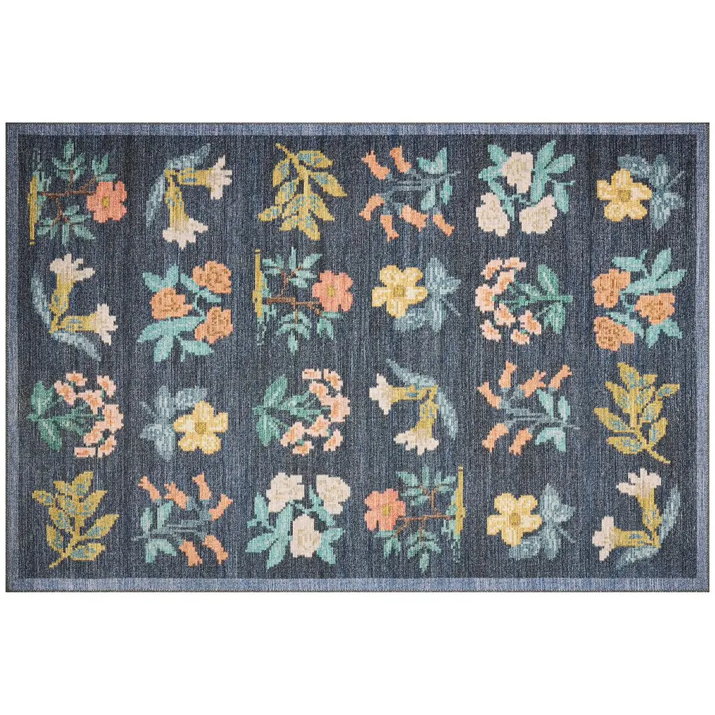 The Rosa Collection by Rifle Paper Co. x Loloi is a power-loomed area rug that takes inspiration from folk art floral textiles with a signature Rifle style. Floral motifs anchor the center of the rug, which is framed with a lovely border for the final touch. The rug��s construction is both durable and velvety soft, ideal for bedrooms and living rooms alike. Made in Turkey of 100% polyester. This collection is Oeko-Tex® certified, ensuring its materials don't contain harmful substances.