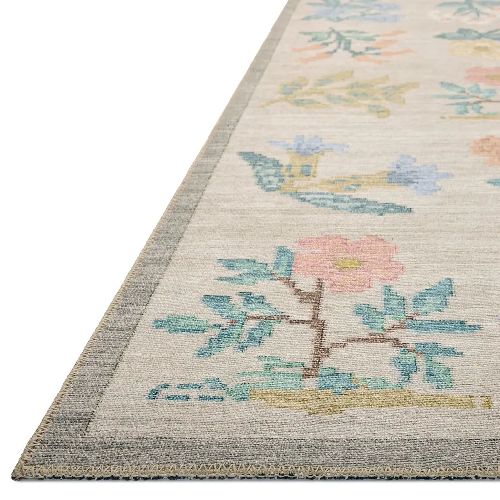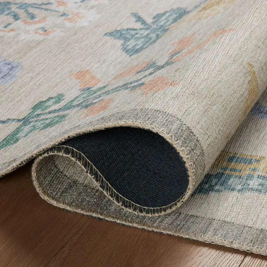 The Rosa Collection by Rifle Paper Co. x Loloi is a power-loomed area rug that takes inspiration from folk art floral textiles with a signature Rifle style. Floral motifs anchor the center of the rug, which is framed with a lovely border for the final touch. The rug��s construction is both durable and velvety soft, ideal for bedrooms and living rooms alike. Made in Turkey of 100% polyester. This collection is Oeko-Tex® certified, ensuring its materials don't contain harmful substances.
