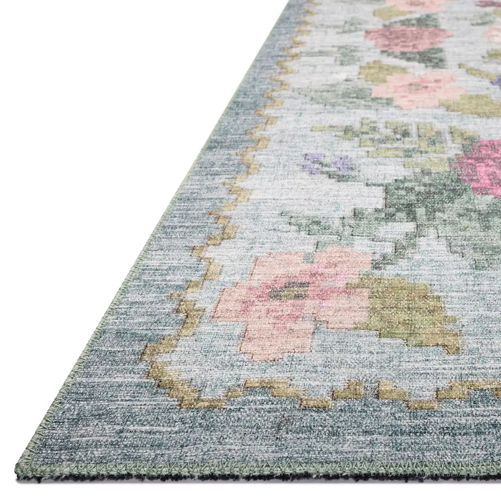 The Rosa Collection by Rifle Paper Co. x Loloi is a power-loomed area rug that takes inspiration from folk art floral textiles with a signature Rifle style. Floral motifs anchor the center of the rug, which is framed with a lovely border for the final touch. The rug��s construction is both durable and velvety soft, ideal for bedrooms and living rooms alike. Made in Turkey of 100% polyester. This collection is Oeko-Tex® certified, ensuring its materials don't contain harmful substances.