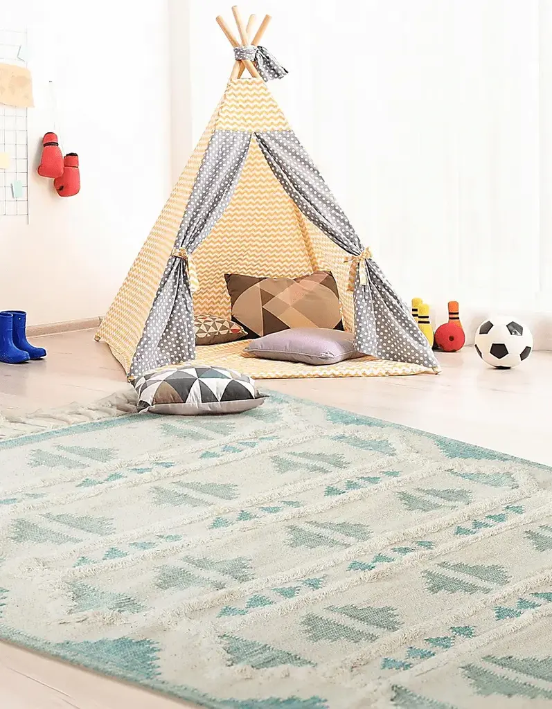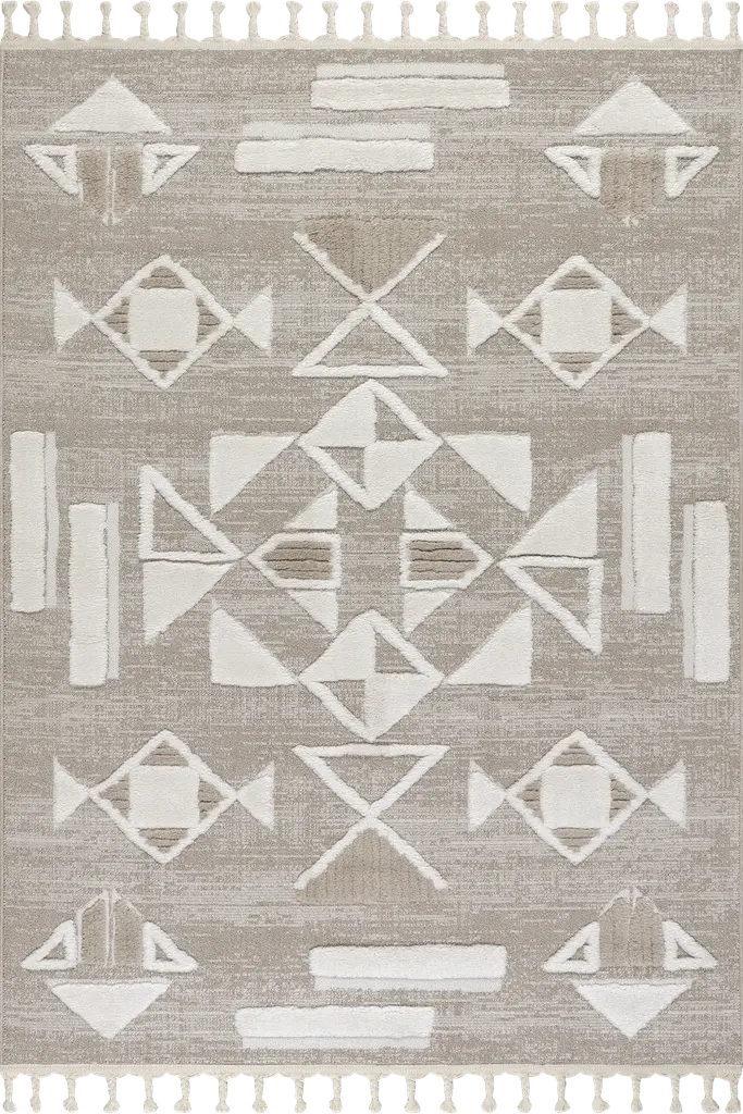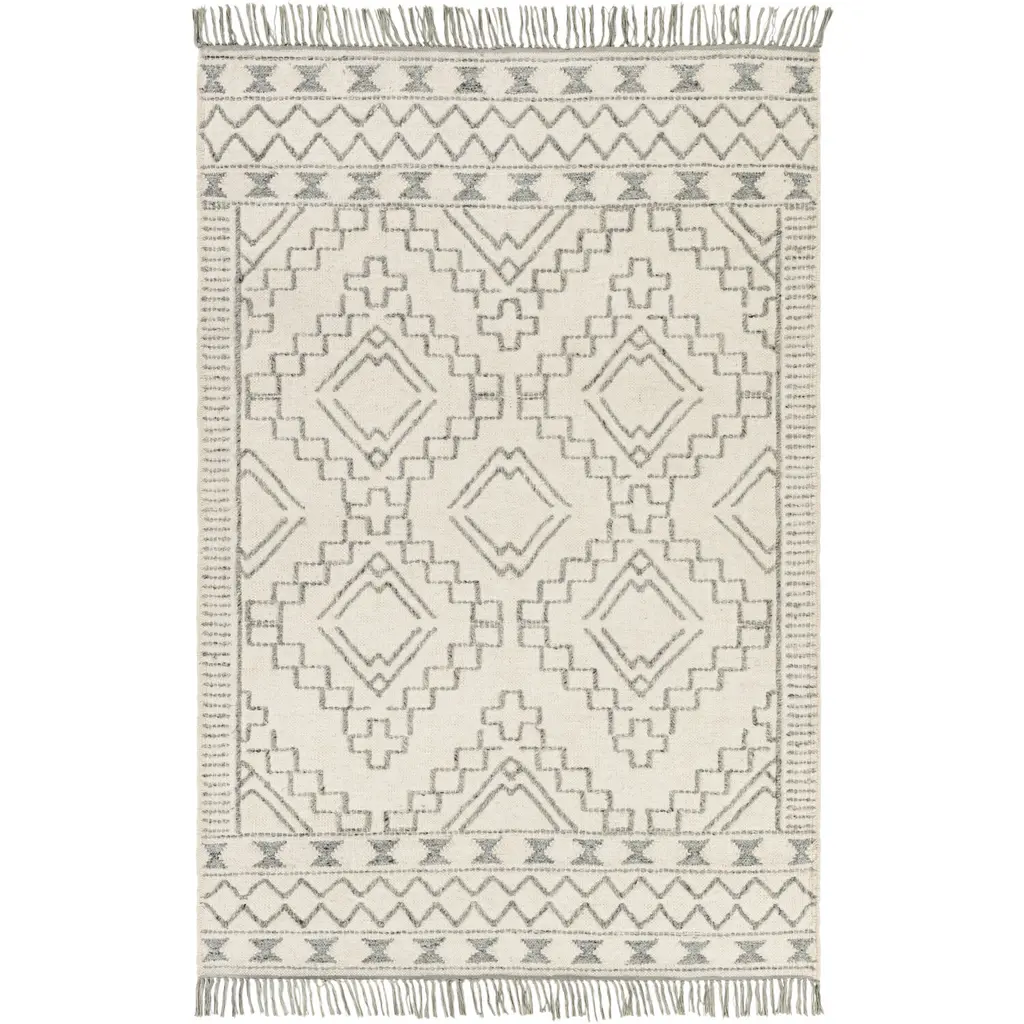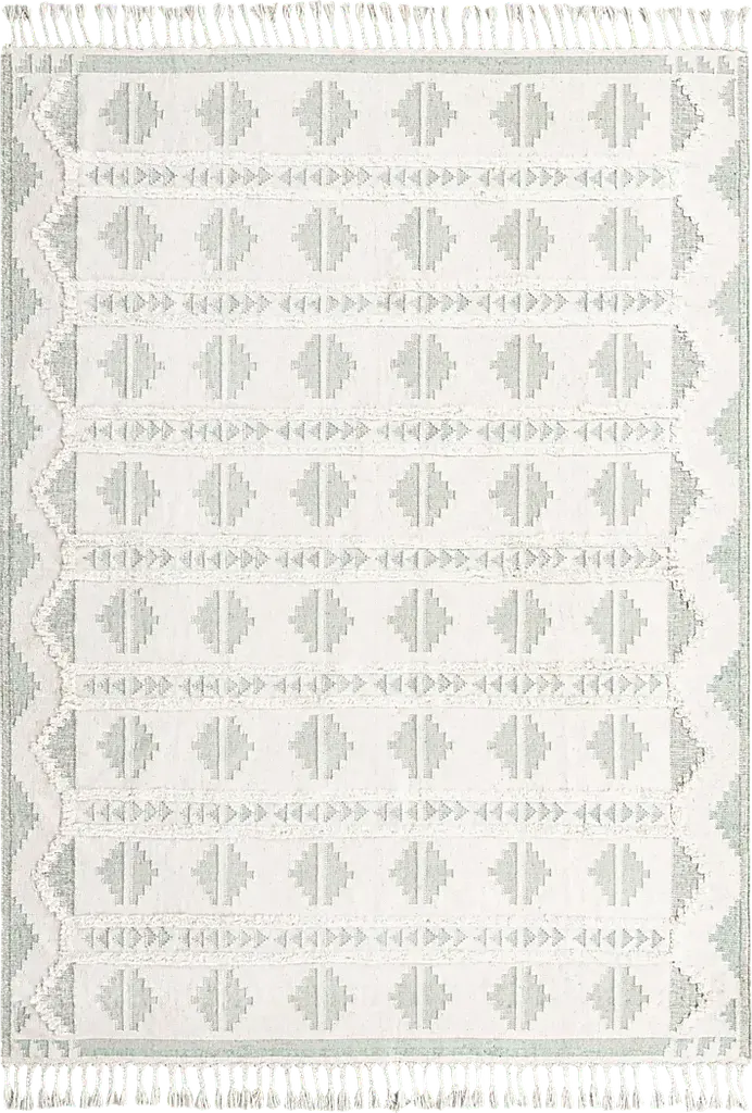 The geometric tribal pattern of the Rosea Collection brings an exciting southwestern flair to any room. The woven wool construction contrasts with raised areas and fringe for even more visual interest. The subdued color palettes and transitional design keep it from becoming too overbearing whether in a modern or traditional style room.