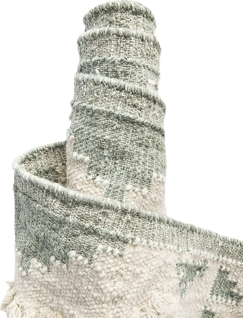 The geometric tribal pattern of the Rosea Collection brings an exciting southwestern flair to any room. The woven wool construction contrasts with raised areas and fringe for even more visual interest. The subdued color palettes and transitional design keep it from becoming too overbearing whether in a modern or traditional style room.