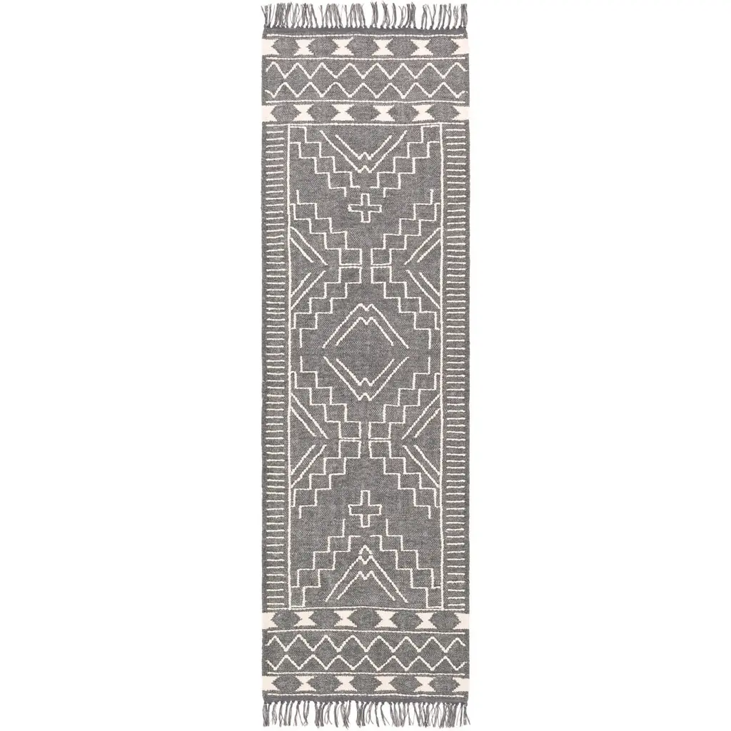 The geometric tribal pattern of the Rosea Collection brings an exciting southwestern flair to any room. The woven wool construction contrasts with raised areas and fringe for even more visual interest. The subdued color palettes and transitional design keep it from becoming too overbearing whether in a modern or traditional style room.