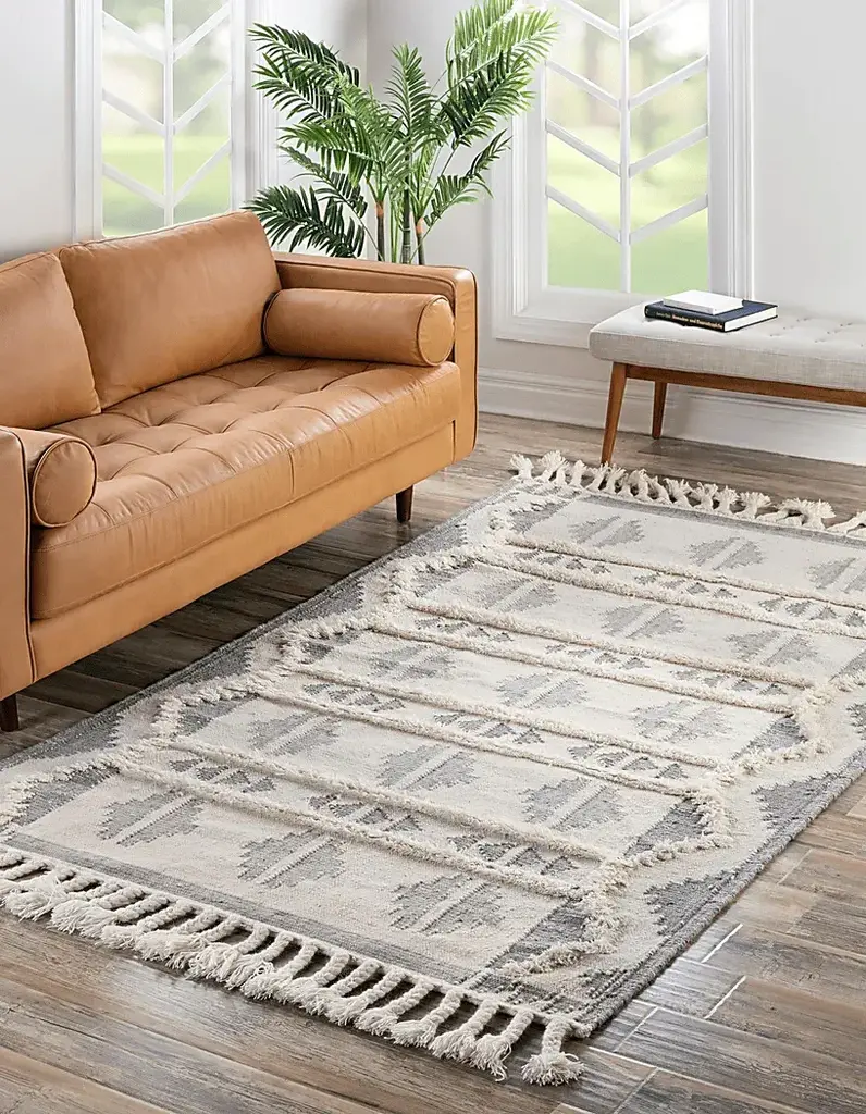 The geometric tribal pattern of the Rosea Collection brings an exciting southwestern flair to any room. The woven wool construction contrasts with raised areas and fringe for even more visual interest. The subdued color palettes and transitional design keep it from becoming too overbearing whether in a modern or traditional style room.