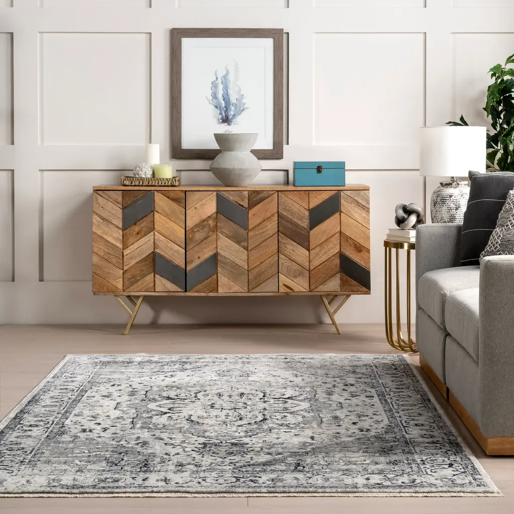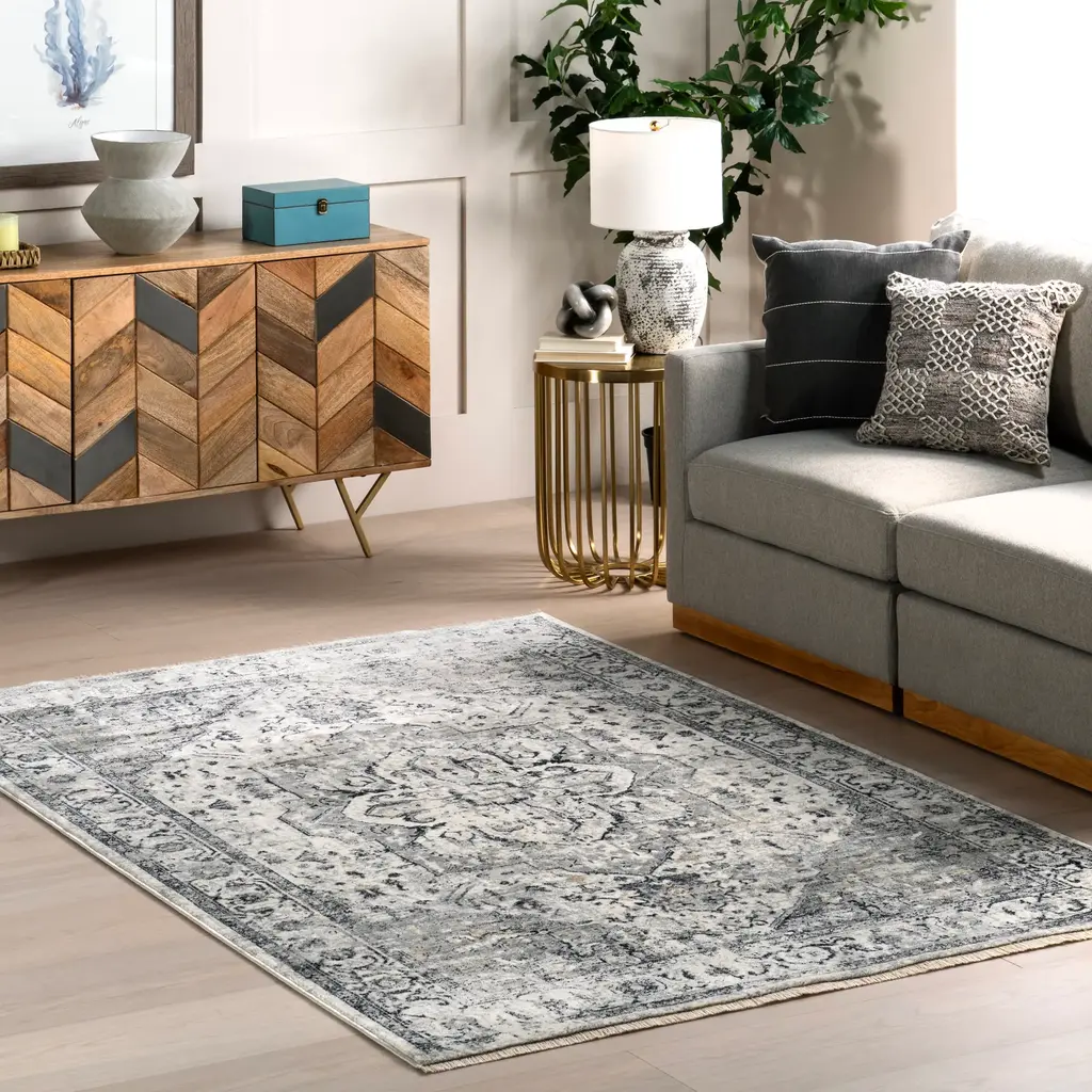 Nothing elevates the vibe more than a daring medallion pattern. A modern spin on a classic motif, this versatile floor covering will stand out with its contrasting details. Composed of durable synthetic fibers, this area rug feels incredibly soft under foot. These bold rugs are an easy way to incorporate the look of heirloom pieces, at affordable prices. Choose from an array of colors and sizes and kick those feet up with our pet-friendly and easy to clean area rugs.