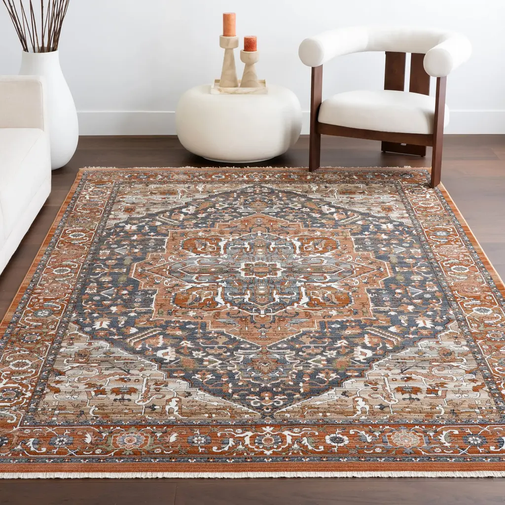 Rosette Medallion Fringed Rug | Rust - 4' X 5' 7"