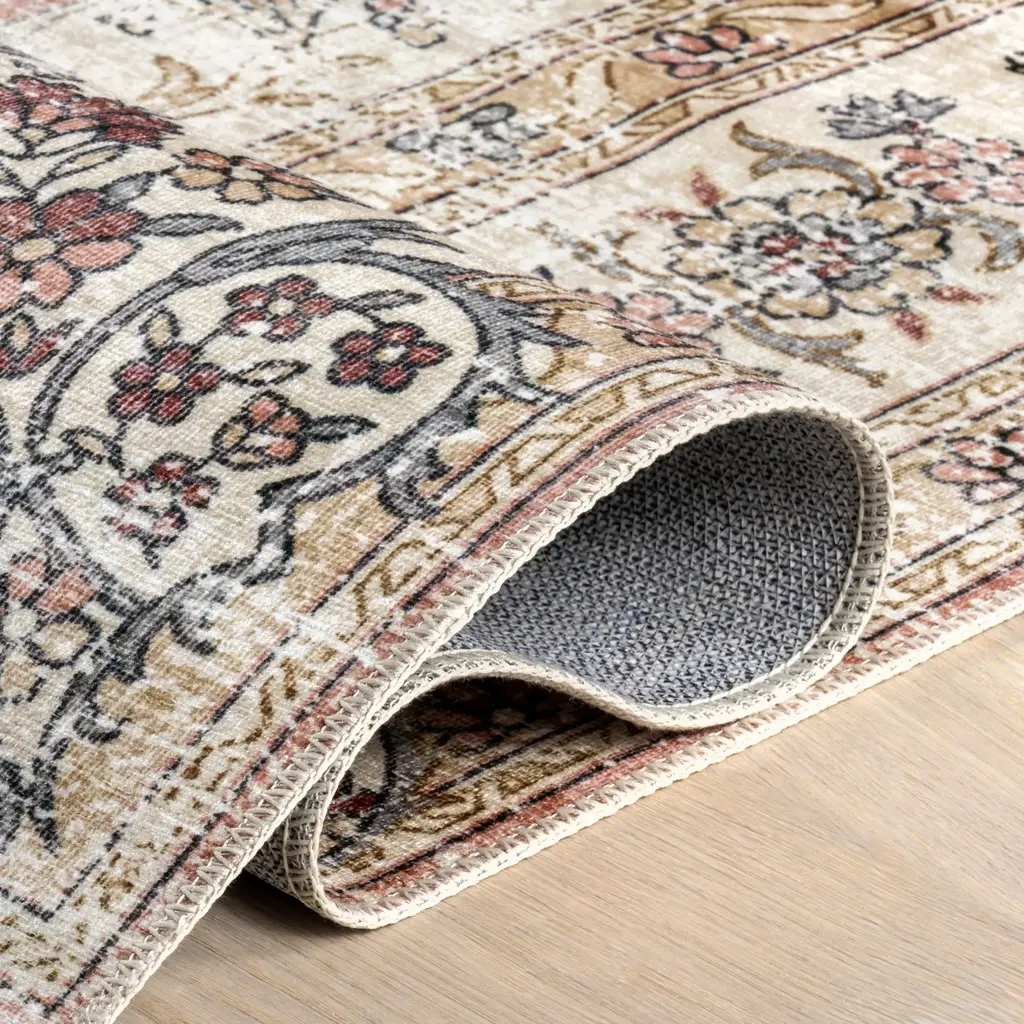 Rosette Medallion Spill Proof Washable Rug | Peach - 2' 6" X 10'