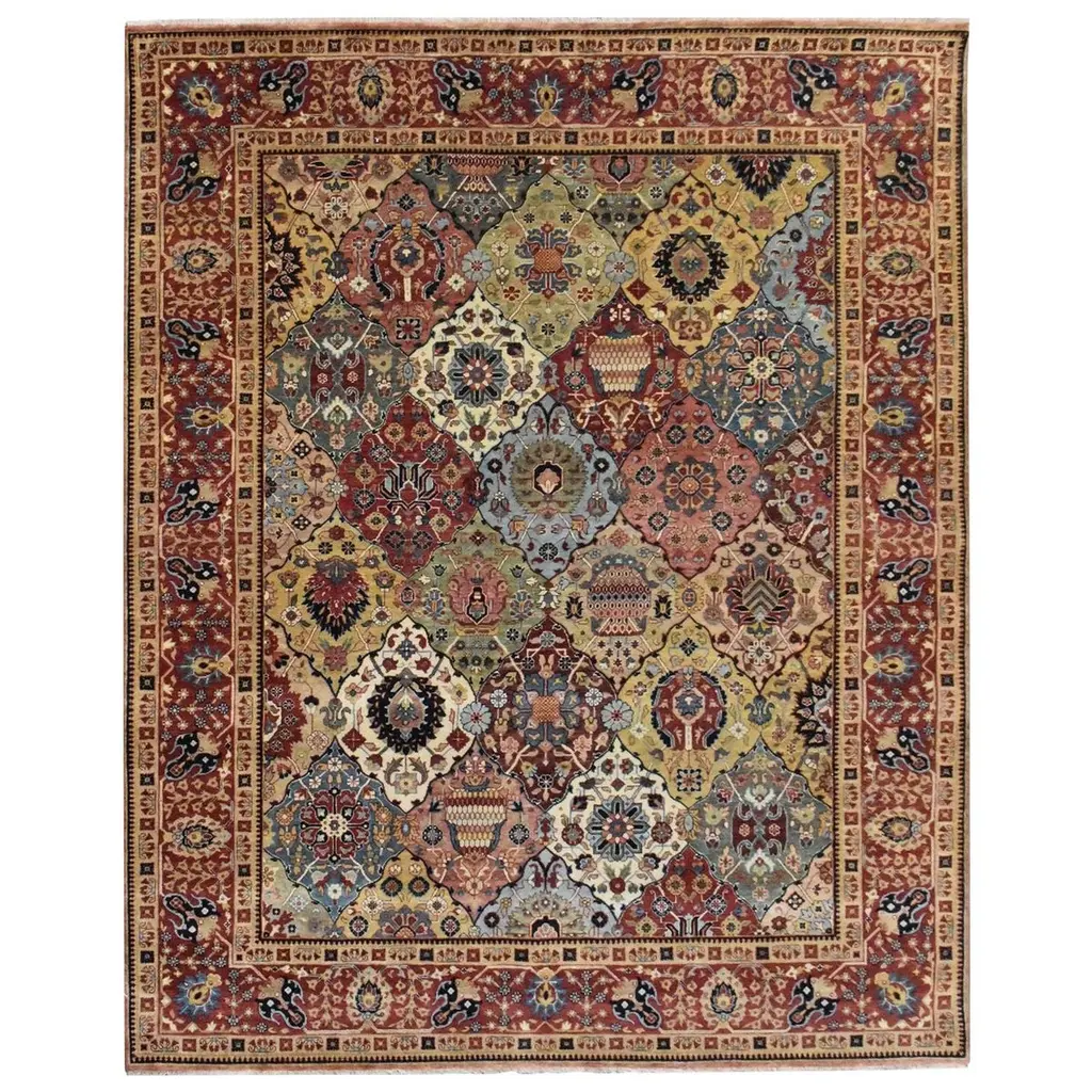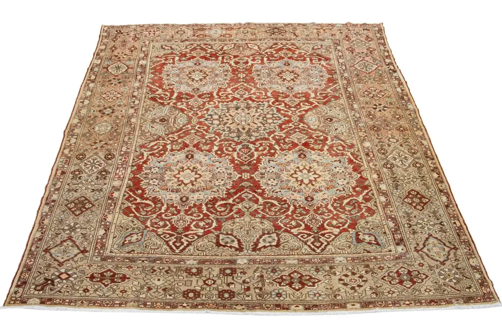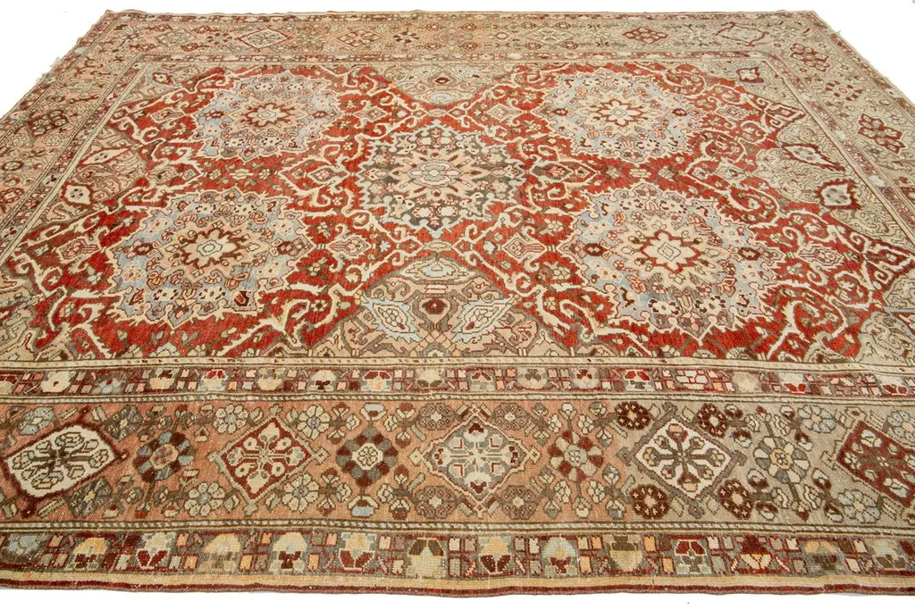 Rosette Persian Bakhtiari Wool Rug Handmade In Rust Color