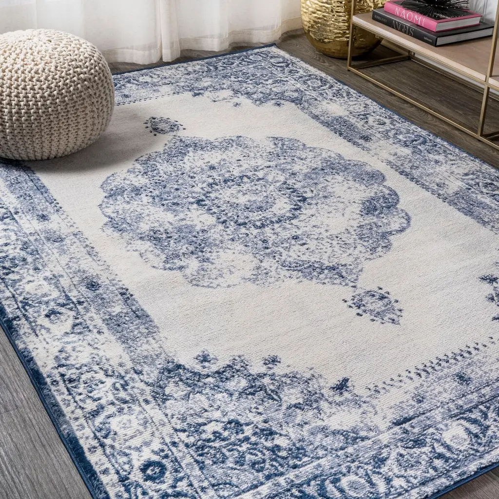 Antique Persian floor coverings inspired this polypropylene rug's ornate design. Its intentional abrash—the fading the occurs to handcrafted rugs over time—lends it artisanal allure. A rug pad is recommended to help prevent slipping and extend the life of the rug.