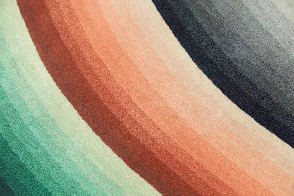 ROUND MIRAGE FOR CASSINAThe MIRAGE collection, designed by Patricia Urquiola, embraces a new shape and opens up to explore the possibilities of the circle with new visual effects. The collection grows with a new design, ROUND MIRAGE, in which color, geometry and overlays continue to dominate but curved lines take over, creating a sinuous impression and greater sense of movement.The contour of ROUND MIRAGE becomes rounded and more defined than in the original design, delineating the intersection of a circle with a square. Urquiola once again creates an optical illusion that recalls the avant-garde op-art movement of the mid-twentieth century, with multiple gradients of color that seem to reflect light.The combination of simple forms with the illusion and dynamism generated by the combination of colors gives rise to a piece with personality, which gives character to any space.Halfway between rug and piece of art, it is conceived both to be placed on the floor and to be displayed on the wall.Knotted by hand, the rug is entirely handmade using New Zealand wool, a high-quality natural fiber, sustainable, renewable and biodegradable, which is also hypoallergenic, insulating and easy to care for.ROUND MIRAGE is available in two color palettes, Blue and Nude. Its dimensions are 169x300cm (5’7”x9’10”).