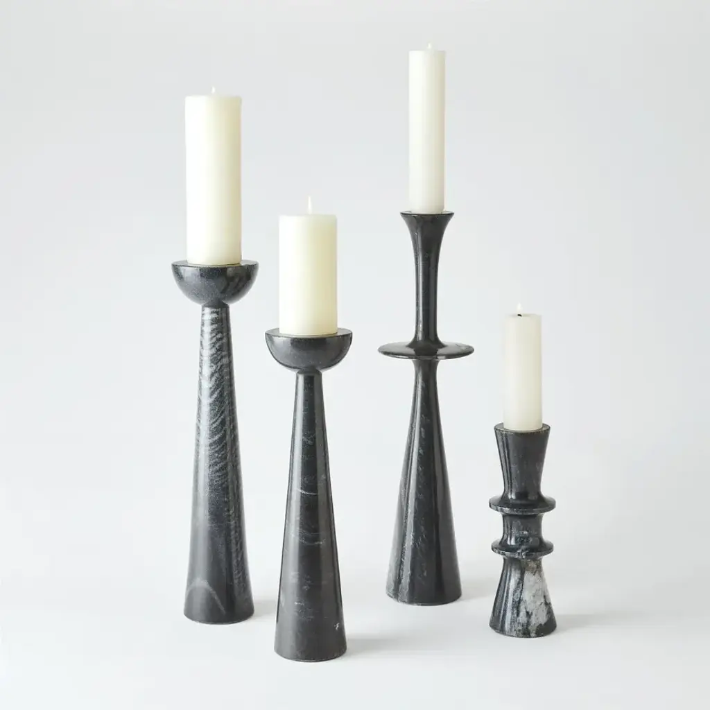 The Round Top Candle Stand is made of hand formed marble with an iron candle spike. From a fashion forward perspective, Global Views offers accessories, furniture, statement lighting, and an assortment of rugs and mirrors to add beauty and joy to your home.