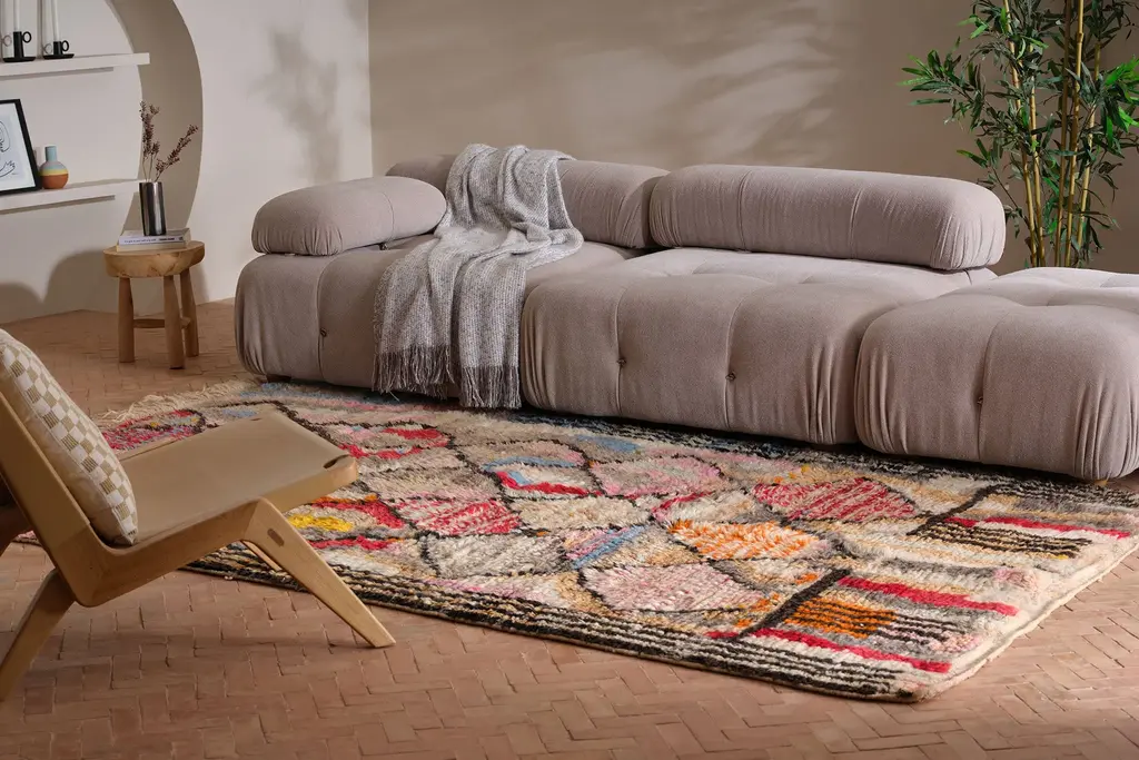 Our Moroccan pieces are each one-of-a-kind. Much of our collection was woven between 30 and 100 years ago, and curated by us. Other rugs in our collection are fresh off the loom and made with traditional techniques. Moroccan rugs don’t come with a key. As with any painting or poem, their motifs have many subjective interpretations. Originally made for personal use, these rugs took months to weave, documenting a shifting tide of events and emotions in the weaver’s life.