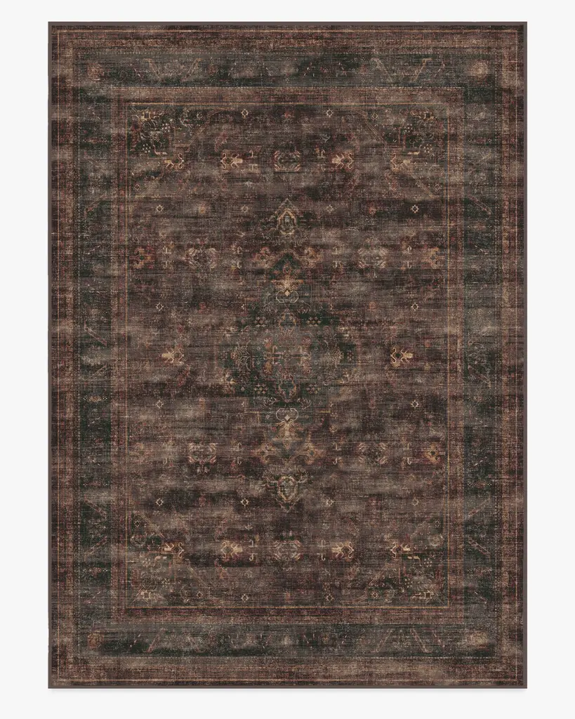 Trusted. Tested. Timeless. Inspired by Iraqi and Turkish medallions, our Rowan Bordeaux Rug features delicate fleurished details and an embellished border. This vintage-like design offers a color palette of rich plums, burgundy, dark blue, and black, accentuated with shimmering pops of gold and teal. Its dark academia aesthetic gives a bit of a gothic edge to your decor. Water-resistant, stain-resistant, and machine-washable. Rug colors may vary slightly according to your device and the lighting in your space.