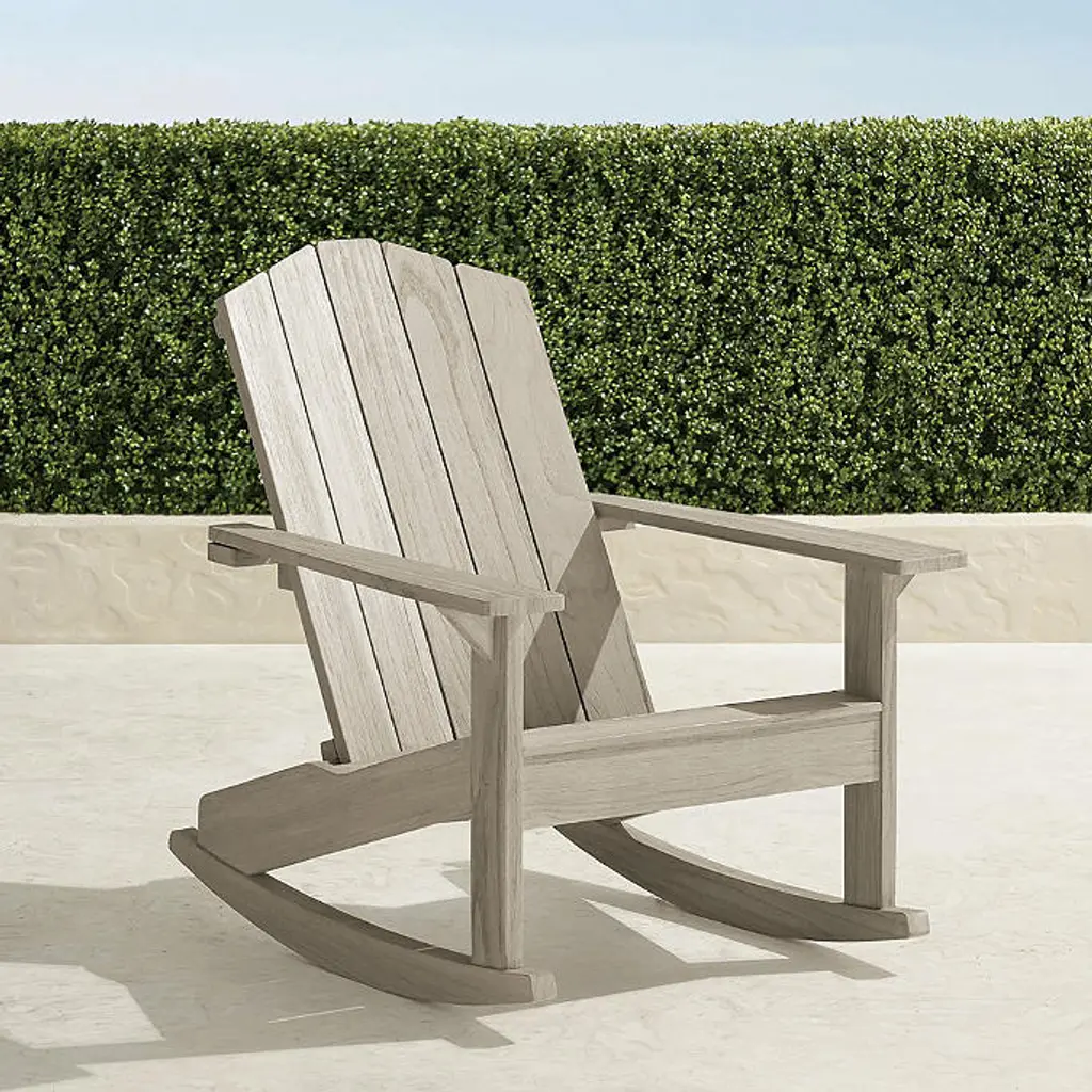 This iconic chair is given a weathered finish that makes it perfect for beachside bungalows or lake house retreats. Its high-quality teak frame, rounded back and rocking feet make it a comfortable seat for hours spent around the fire pit or outdoors. Hand-built from sustainably harvested, high-quality teak that is naturally resistant to mildew, so it holds up to rain and humidity Durable teak frame is kiln dried to remove moisture, guarding against warping and cracking, and sanded by hand so it's smooth to the touch Teak naturally releases resinous oils as it weathers; using a rug is recommended to help prevent staining of deck or patio surfaces Frame is backed by an industry-leading 10-year structural warranty Assembly required A Frontgate exclusive. At Frontgate, our primary focus is quality. We guarantee that every product we sell will stand up to the supreme test – our customers' satisfaction. To learn more about our policies, visit our Shipping & Processing, Returns & Exchanges and Warranty & Price Guarantee pages.