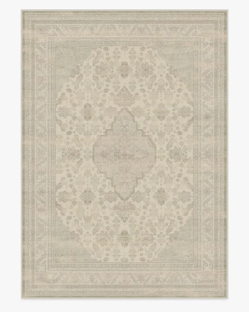 Trusted. Tested. Timeless. Inspired by Iraqi and Turkish medallions, our Rowan Soft Grey & Ivory Rug features delicate fleurished details and an embellished border. This vintage-like design offers a color palette of true neutral greys, from warm soft greys to icier bright greys, adding balance and easy coordination with your furniture and home decor. Water-resistant, stain-resistant, and machine-washable. Rug colors may vary slightly according to your device and the lighting in your space.