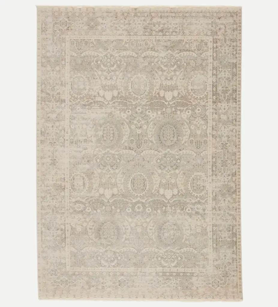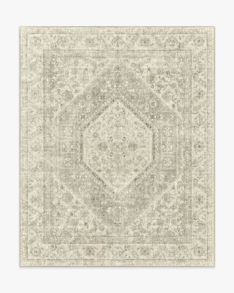 Trusted. Tested. Timeless. Inspired by Iraqi and Turkish medallions, our Rowan Soft Grey & Ivory Rug features delicate fleurished details and an embellished border. This vintage-like design offers a color palette of true neutral greys, from warm soft greys to icier bright greys, adding balance and easy coordination with your furniture and home decor. Water-resistant, stain-resistant, and machine-washable. Rug colors may vary slightly according to your device and the lighting in your space.