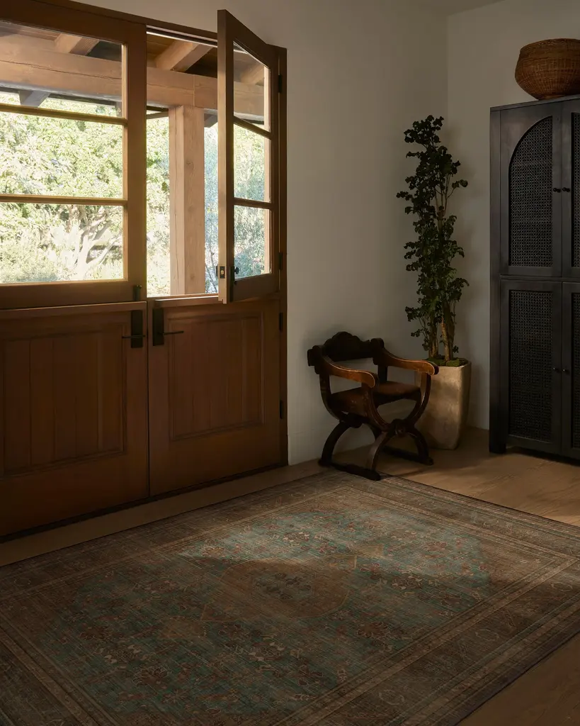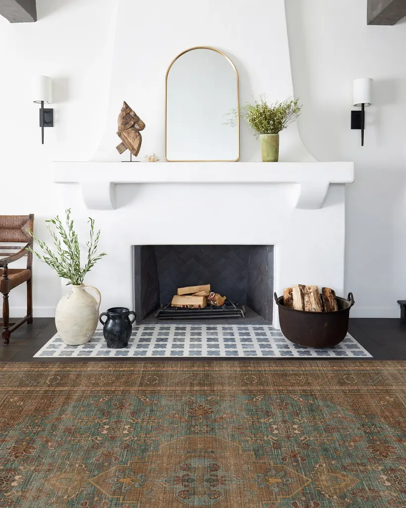 Trusted. Tested. Timeless. Inspired by Iraqi and Turkish medallions, our Rowan Teal Blue & Copper Rug features delicate fleurished details and an embellished border. This vintage design blends rich browns, orange copper tones, and soft creams, layering antique charm against a warm teal blue field. Its bold, contrasting colors evoke the warmth of a sunset palette, adding timeless elegance to your decor. Water-resistant, stain-resistant, and machine-washable. Rug colors may vary slightly according to your device and the lighting in your space.