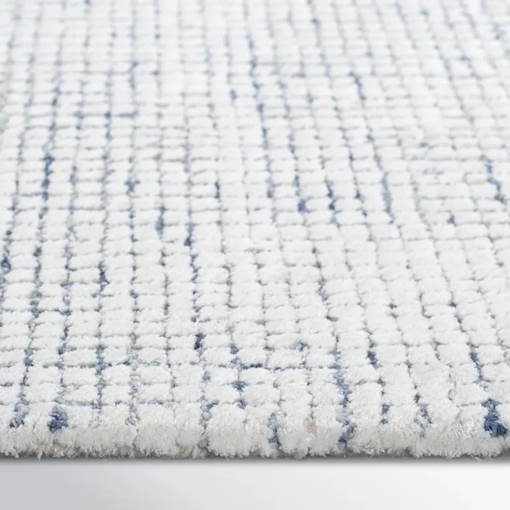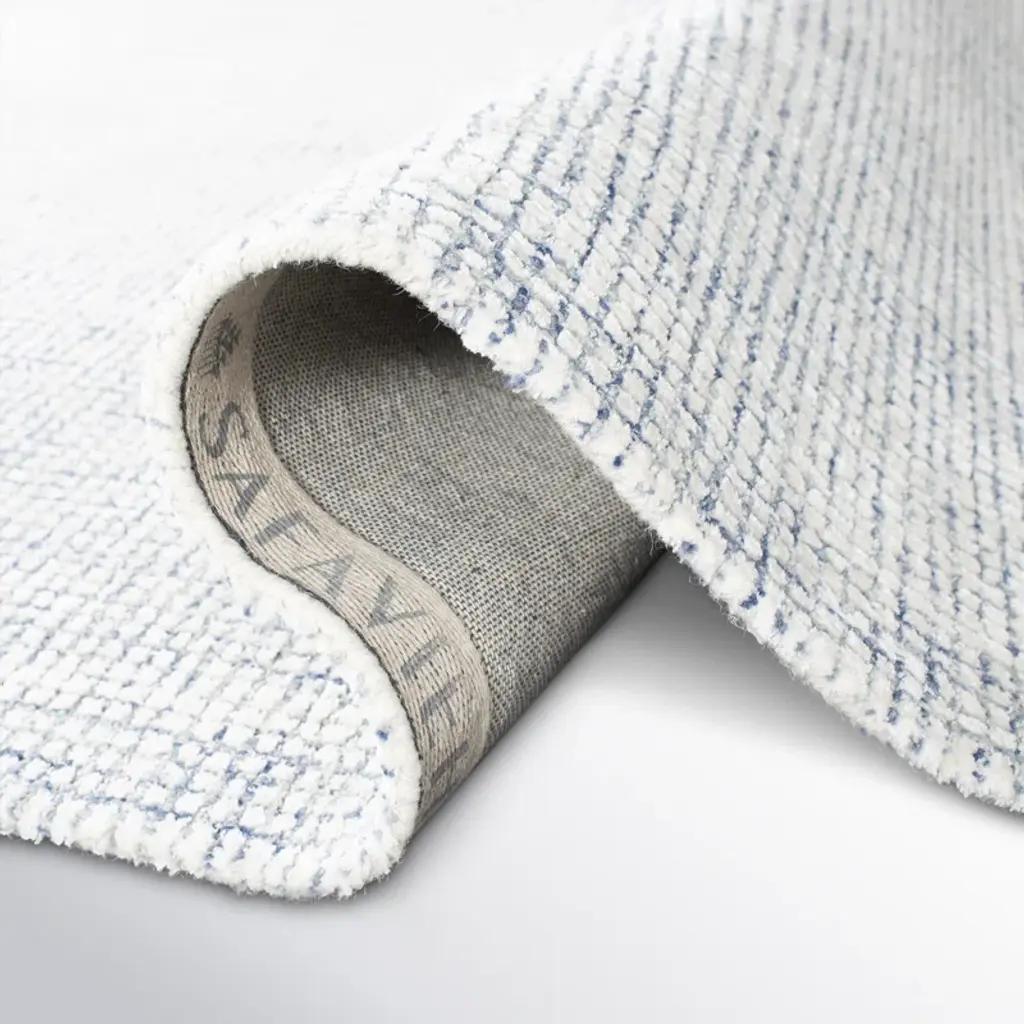 Handmade in India from a wool/viscose blend, this tufted area rug has a subtle stripe pattern that's sure to turn heads and inspire compliments wherever it sits. Offering neutral hues of ivory and blue, this design is easy to add alongside a variety of decor styles and already established color palettes. To make the most out of your new rug, we recommend pairing it with a rug pad (sold separately) underneath for added stability, and to protect your floors from scuffs and scratches.
