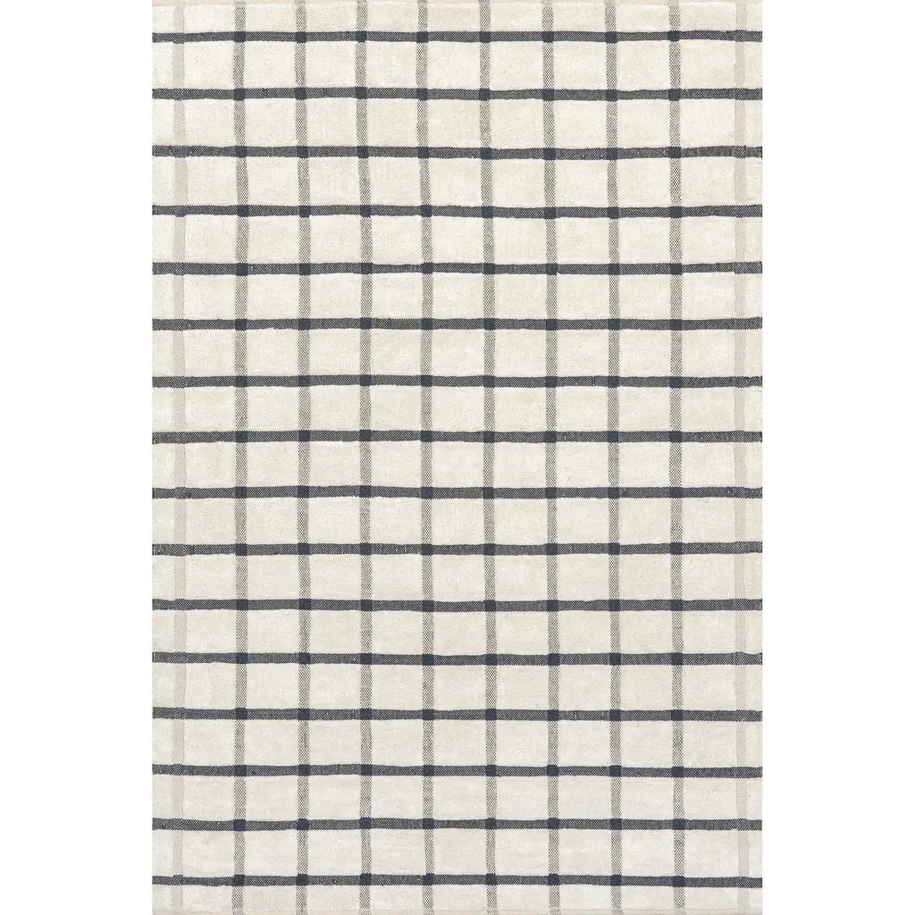 Rowena Checked Wool Area Rug - 5' X 8' - Ivory - Rectangle