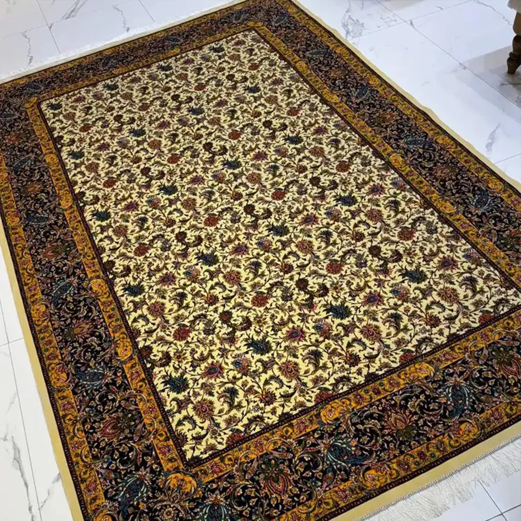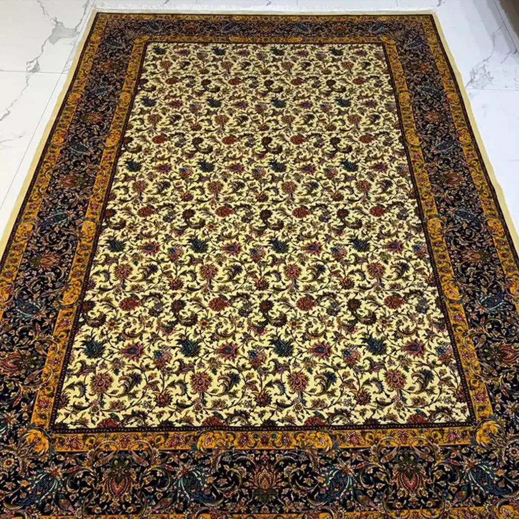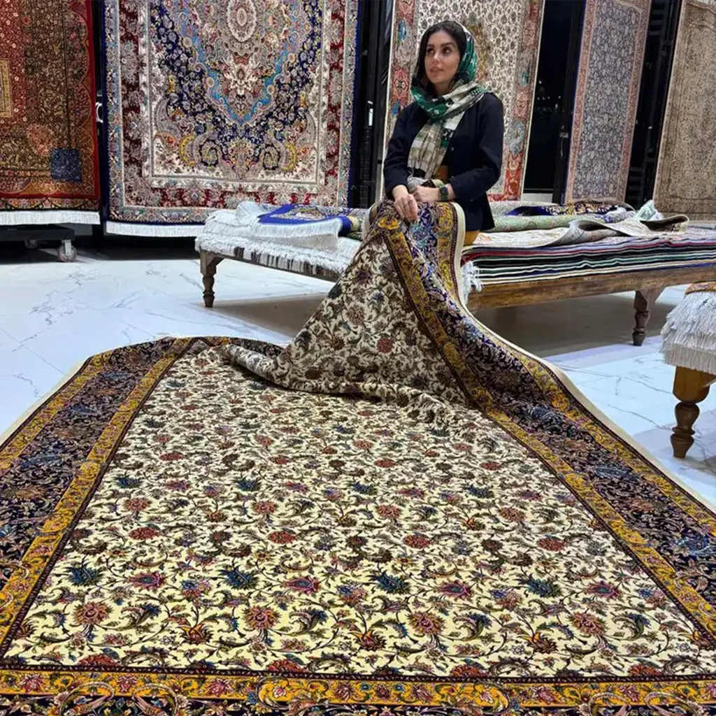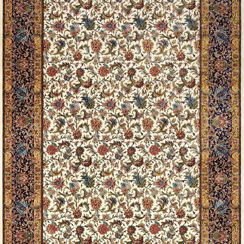 Woven from an authentic and original antique Persian rug design, this luxurious silk carpet embodies the enduring artistic heritage that has been passed down through generations and now lives on through Persian Signature. Every motif is thoughtfully selected from rare, historic Persian drawings, preserving a sense of timeless elegance and cultural richness in each thread.This piece is enhanced with finely hand-sewn zigzag edges, meticulously hand-woven roots, and expert hand polishing, refinements that highlight the exceptional craftsmanship behind its creation. The result is a Persian pure silk rug that blends traditional mastery with refined detail.At Persian Signature, we stand firmly behind the superior quality, artistic value, and lasting beauty of every carpet we offer. This rug is more than a decorative piece; it's a continuation of the Persian legacy, brought to life through silk and design.Ask ChatGPT