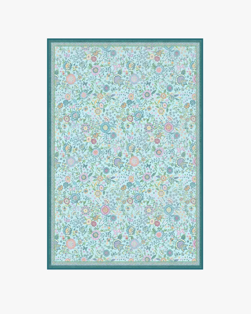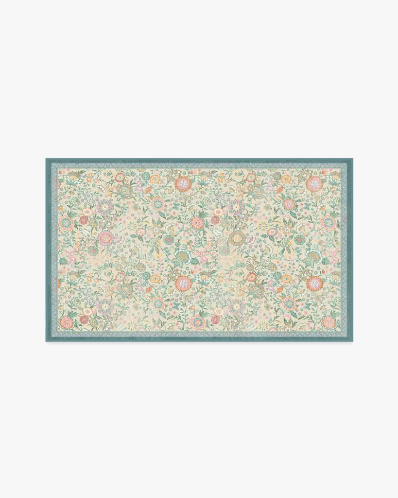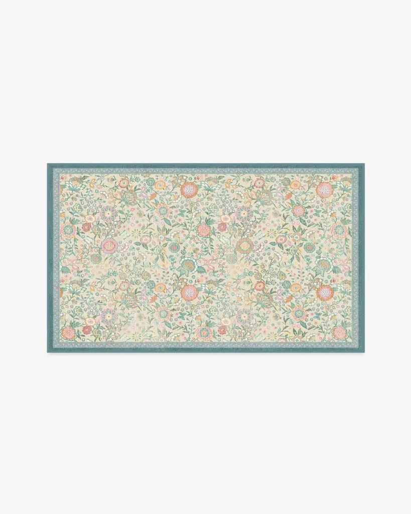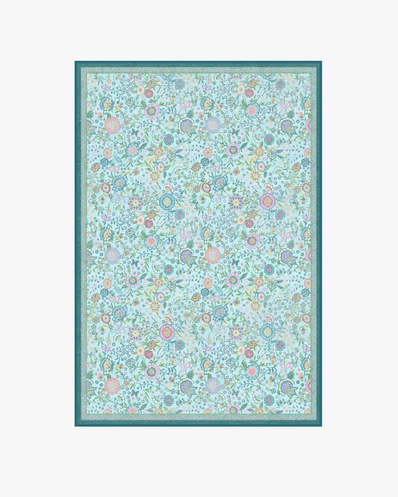 Capture the whimsy of the Bridgerton floral gardens with our Bridgerton Royal Garden Multicolor Rug. This bright and ditzy design features a medley of fun flowers in maroons, greens, oranges, and yellows against a soft blue background. It's the perfect rug to get swept off your feet. Water-resistant, stain-resistant, and machine-washable. Rug colors may vary slightly according to your device and the lighting in your space.